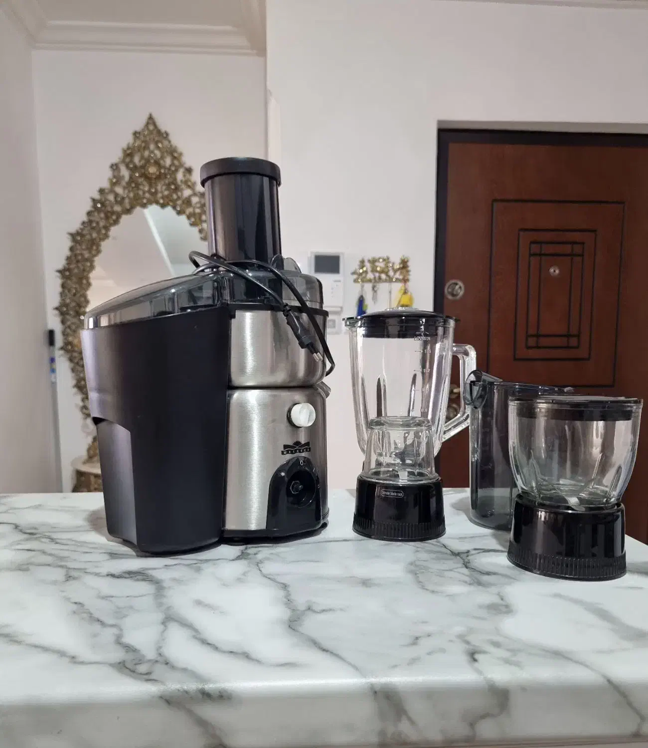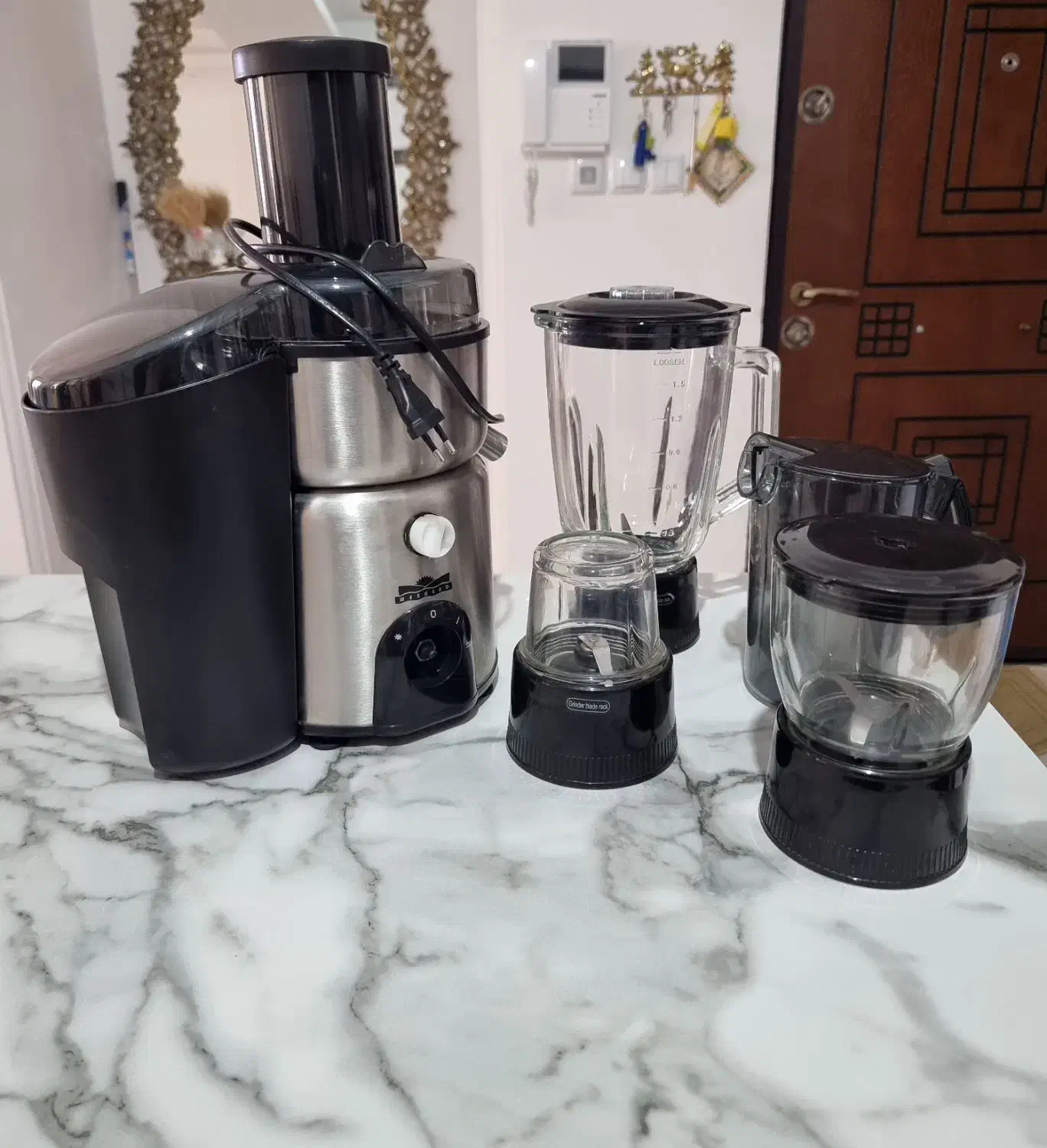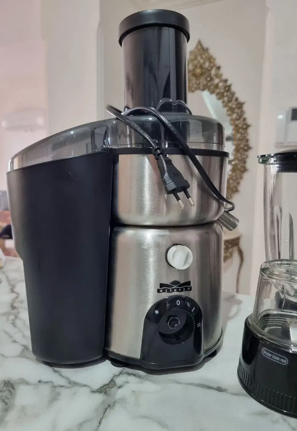 آبمیوه گیری ۴ کاره مارک ویکند ( weekend ) همشون کاملا سالم هستند بدون خط و خش و خیلی تمیز کلا دوسه بار استفاده کردم ازش برای جهیزیه هم کاملا مناسبه قیمتشم خیلی مناسب گذاشتم ارسال هم داریم لطفا خریدار واقعی پیام بزاره ممنون آدرس : بابلسر _ شریفی