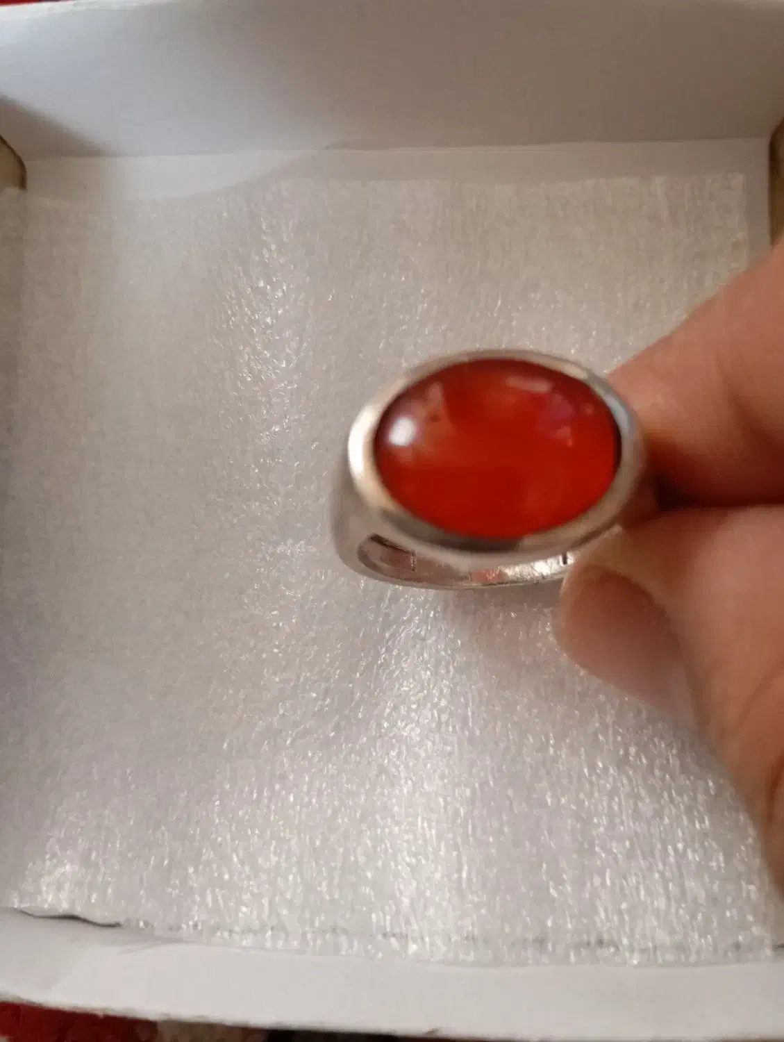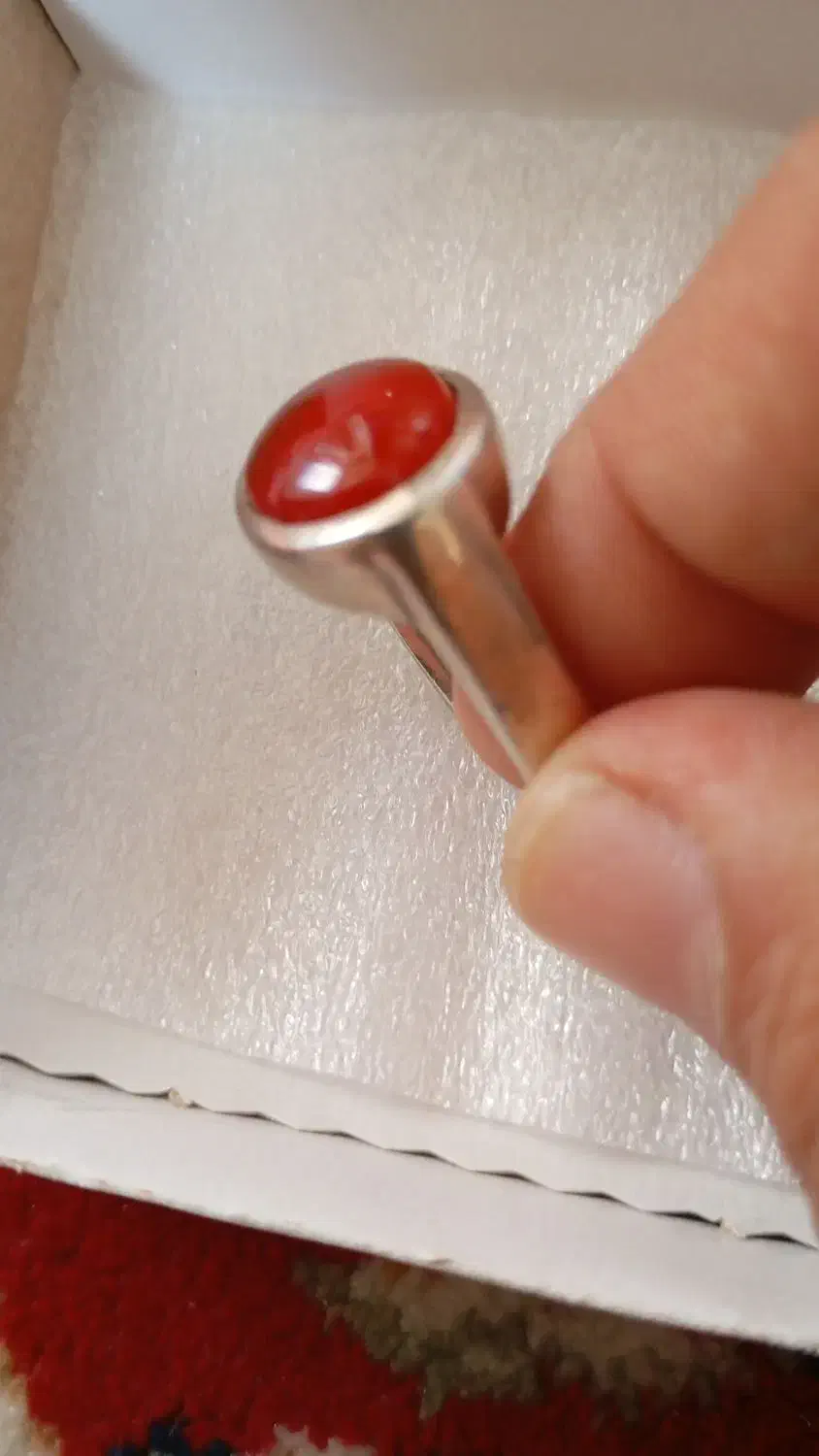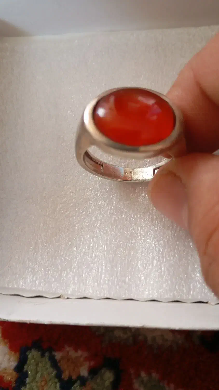 انگشتر نقره عقیق با رکاب صفوی و عیار ۹۲۵ است