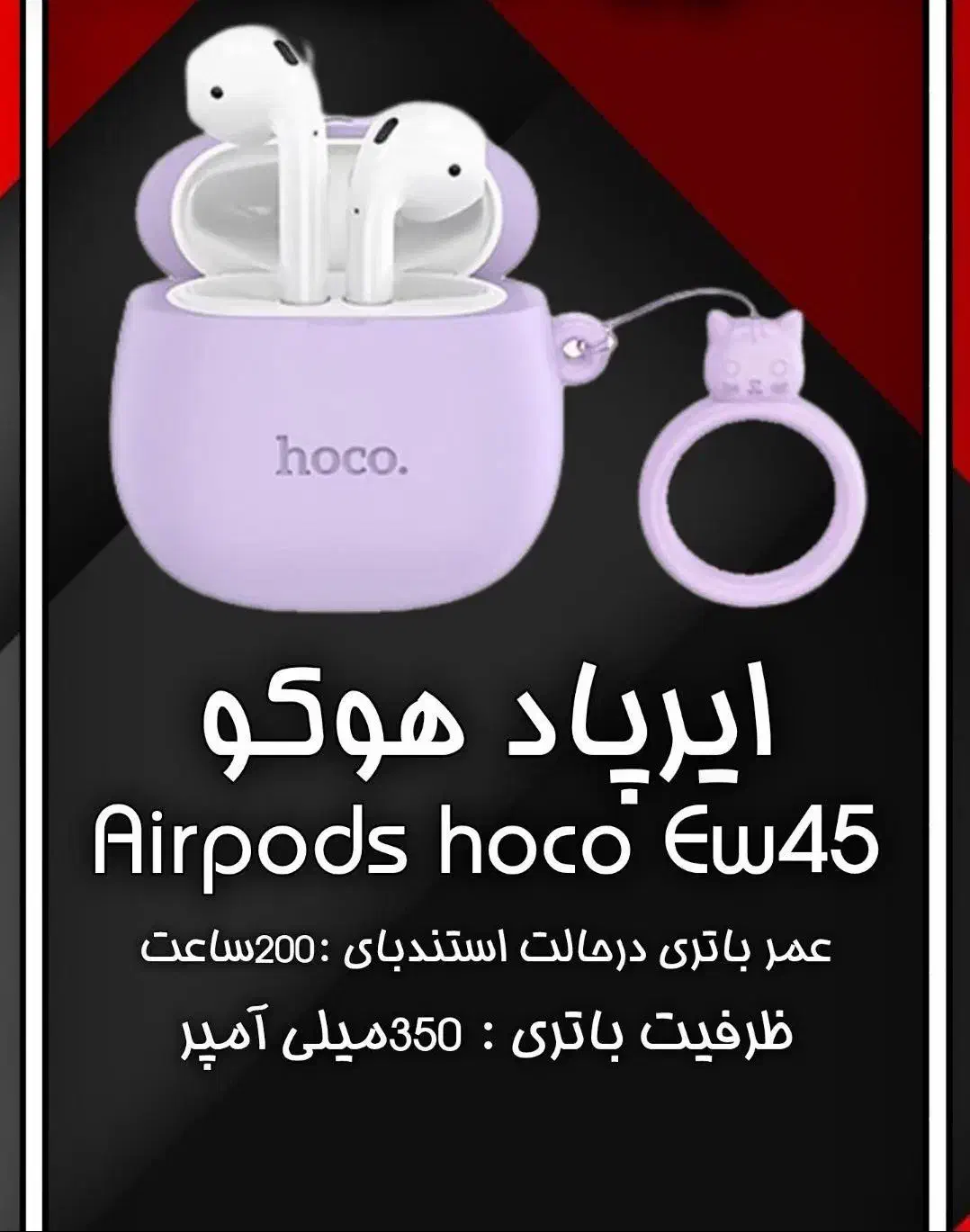 فروش ویژه محصول : Airpod Hoco EW 45 نحوه پرداخت و ارسال : پرداخت درب منزل+ارسال دو تا پنج روزه قیمت : 2/300/000 هزار تومان مشخصات: شناسنامه.برند هوکو | HOCO مشخصات کلی.وزن 43 گرم وزن جعبه شارژر, هر ایرباد 4 گرم مشخصات کلی.ابعاد 53.8 x 44.3 x 21.5 میلیمتر نوع گوشی هدفون بلوتوث اتصالات.نوع اتصال True Wireless ارتباط بیسیم بین دو گوشی با یکدیگر و منبع باتری/شارژ.نوع باتری لیتیومی مناسب برای گیمینگ, مکالمه, موزیک, ورزش سازگار با بهترین عملکرد با گوشی های آیفون، ای پاد، اپل TV، اپل واچ و کامپیوترهای مک با آخرین نسخه سیستمعامل, همه گوشی های دارای بلوتوث استاندارد IP4X مقاوم در برابر عرق، رطوبت، ضربه فیزیکی و گرد و غبار شناسنامه.کشور سازنده چین ♻️ نحوه ثبت خرید : اسم فامیلی ؛ شهر و ادرس سکونت و کد پستی ؛ شماره تماس ارسال کنید برای مشاهده کانال و سایتمون در پی وی پیام بدید ارسال میشه. ارسال با تیپاکس و درب منزل انجام میشه . هزینه ارسال هم درب منزل پرداخت میشود