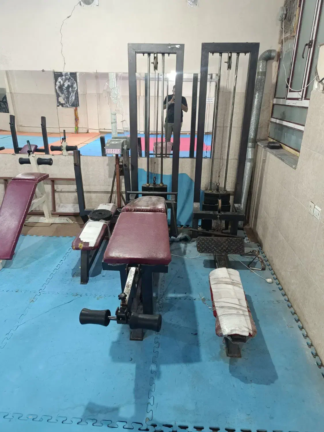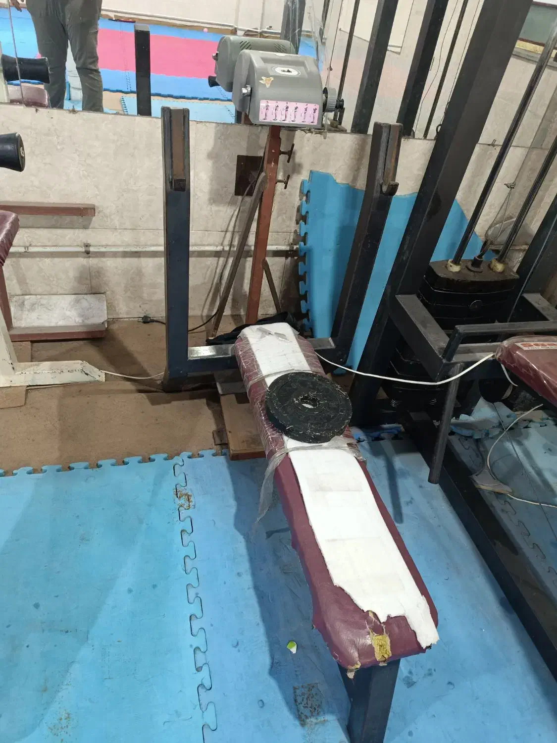 1- تردمیل سه کاره پروفشنال 2-دستگاه کراس اور 3- ٫٫ اسکات 4- ٫٫ پرس پا و هاگ(در یک دستگاه) 5- ٫٫ پشت پا ۶- ٫٫ جلوپا ۷- ٫٫ فیله کمر ۸- ٫٫ ساق پا *- ٫٫ پرس بالا سینه (بزرگ) *۰- ٫٫ پرس بالاسینه (کوچک) **- ٫٫ پرس سینه (بزرگ) **- ٫٫ پرس سینه (کوچک) **- ٫٫ قایقی **- ٫٫ زیربغل سیم کش ۱۵- ٫٫ میز لاری ۱۶- ٫٫ دراز نشست ۱۷- ٫٫ شنا سوئدی ۱۸- میز بدنسازی ۱۹- جای هالتر فلزی ۲ عدد ۲۰- دستگاه مسگری ۲۱- هالتر کوچک ۴ عدد ۲۲- هالتر بزرگ ۳ عدد ۲۳- وزنه ها به ترتیب ۲ عدد بیست کیلویی(فلزی)_۶ عدد ۱۵ کیلویی(پلاستیکی)_ ۶ عدد ۱۰ کیلویی(پلاستیکی)_ ۹ عدد ۱۰ کیلویی(فلزی)_ ۶ عدد ۵ کیلویی(پلاستیکی)_ ۱۵ عدد ۲٫۵ کیلویی(پلاستیکی) ۲۴- ۱۰ جفت دمبل متفرقه ۵ الی ۳۰ کیلویی ۲۵- دستگاه دوچرخه ثابت ۳ عدد( نیاز به تعمیر دارد) ۲۶- تردمیل پروفشنال تک کاره بزرگ همه موارد ذکر شده کارکرده بوده و تعداد کمی از آنها نیاز به تعمیر دارند