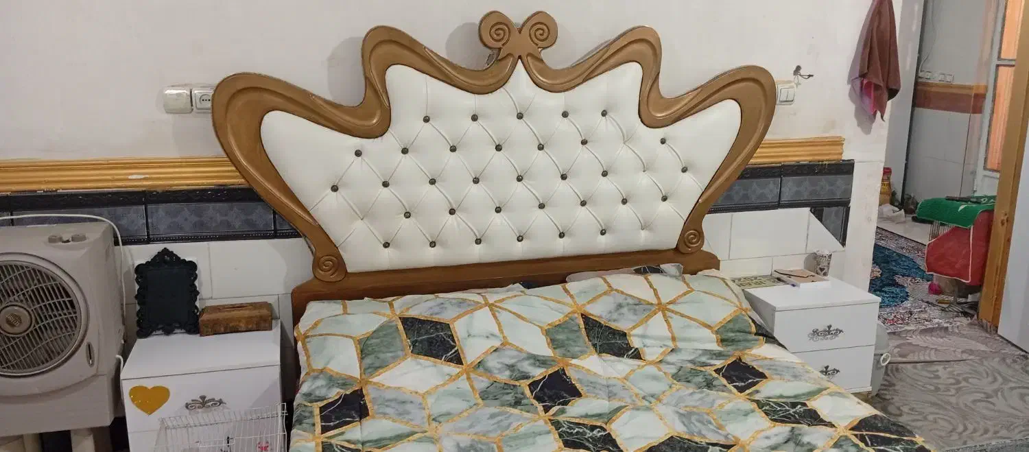 سلام یک سرویس خواب دونفرکاملن نودوتاپاتختی میزارایشی تاج داربایک چهارپایه مال میزارایشی بدون هیچ خط خش تنها چیزی که شکست فقدردوتادست مال کیشاب توعکس هم پیدان باتاج تخت نورپردازی سفیددارد با مشتری کنار میام