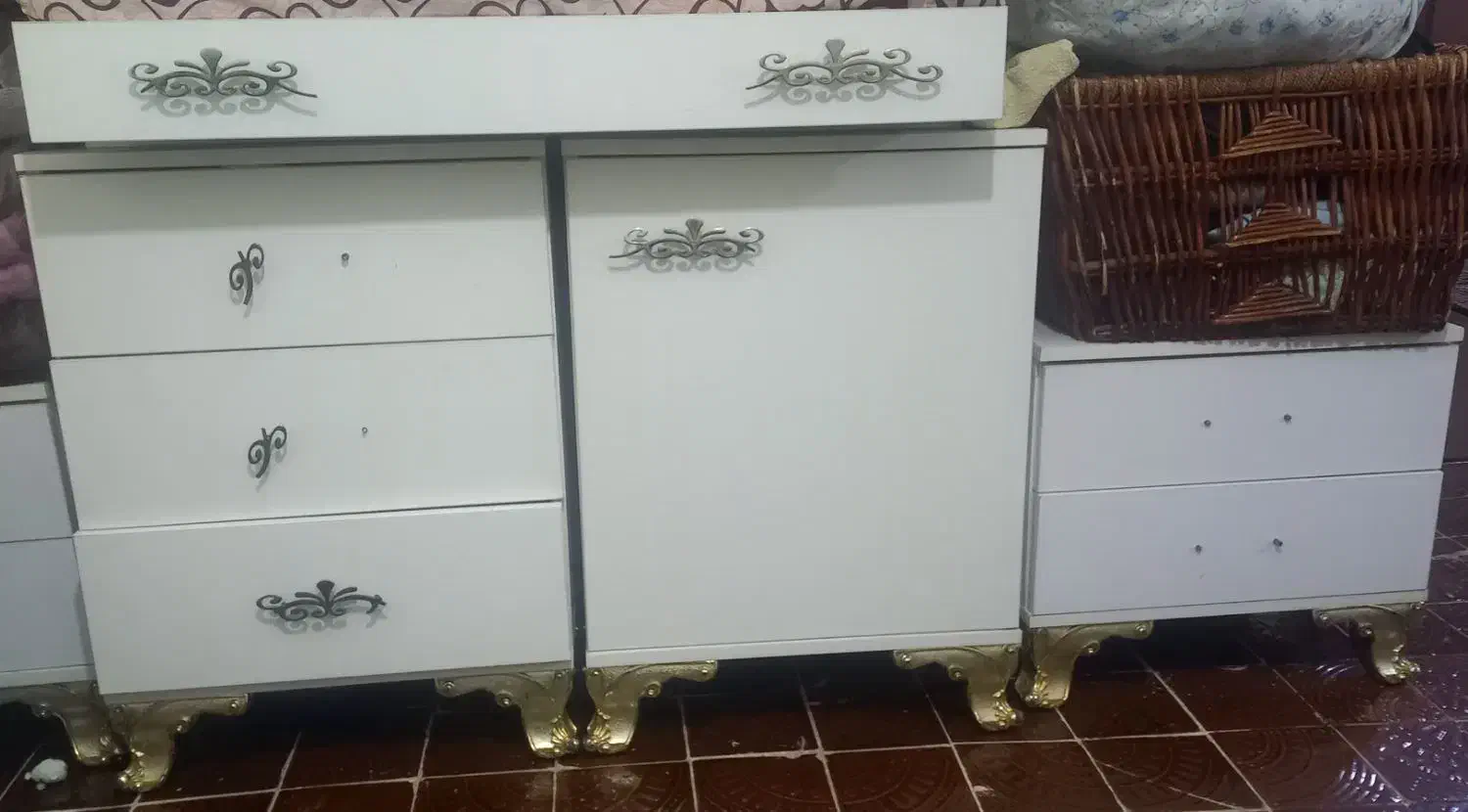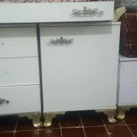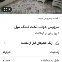 با عرض سلام و خسته نباشید تخت دونفره با تشکر طبی که کاملا سالم و استفاده نشده میباشد همراه با دو عدد پاتختی کشویی دو درب_ و سک دراور که ی طرف بزرگ و تک درب و طرف دیگه ۳درب هر کدوم یک کشویی ریلی بزرگ و یه دونه تکی هم میخوره روش که به اصطلاح اون واسه اتو و سشوار و لوازم اریش و یه اینه قدی بلندم روشه با صندلیش.خلاصه کامل قیمت نسبت به ۴تا چوب جدید اشغال نوپان خورده چوب باشه چوبش مقایسه نکنید با ام دی اف درجه ۱ با کیفیت و دوام و جنس چوب و مدل کار مقایسه کنید چه برای من چه هر کسی که قسمت شد خواستین خرید کنید. عکس اخر یک اگهی که دقیقا شبیه سرویس مارو زده ۱۷ البته تا ۲۵ هم قیمت دیدم ولی بنده منصفانه زدم یه زوج دعاشون پشت بچه م باشه درصورت پسند بازدید = خرید باتشکر از عوامل محترم دیوار