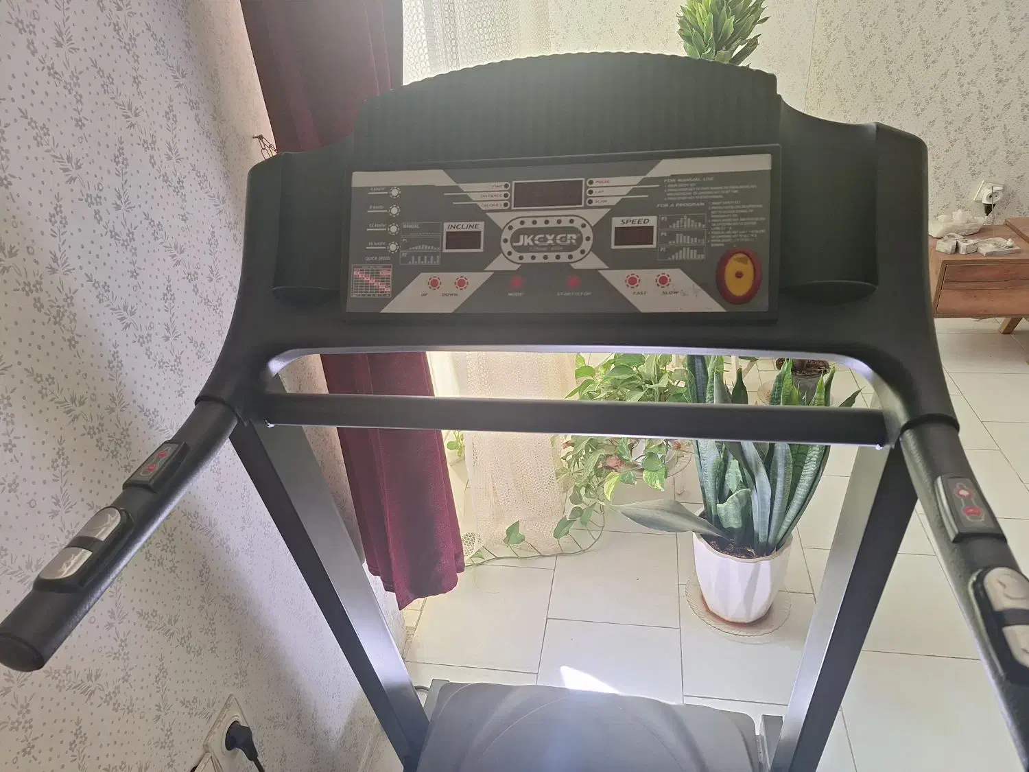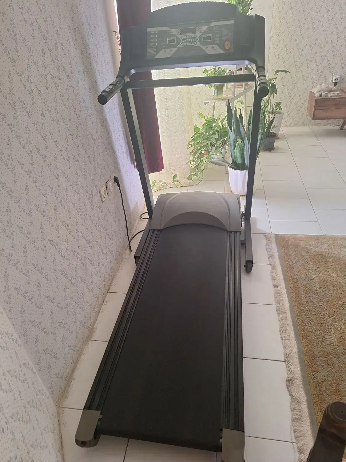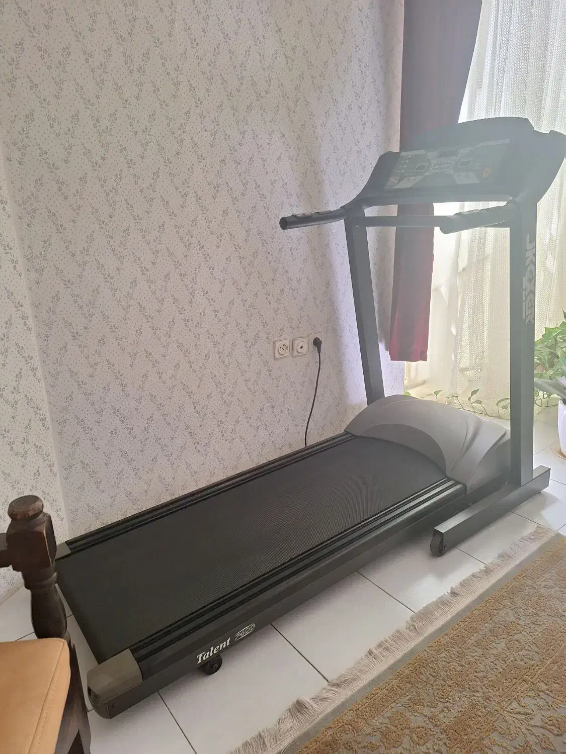 تردمیل خانگی جی کی اکسر Jkexer Talent 7400 تحمل وزن 120 کیلوگرم حداکثر سرعت 16 کیلومتر بر ساعت است؛ این در حالی است که کمترین سرعت آن 0.8 کیلومتر بر ساعت بدنه با قابلیت تا شدن ابعاد تسمه تردمیل جی کی اکسر 132* 43 سانتیمتر است. ابعاد خود تردمیل نیز 190* 84*147 سانتیمتر بوده و درمجموع یک دستگاه جمعوجور و بهصرفه قدرت موتور 2.5 اسببخار از نوع DC و کمصداست. این موتور موجب شده تا با خرید تردمیل خانگی ال تی اسپرت بتوان ورزش کوهپیمایی را هم، شبیهسازی کرد؛ زیرا دستگاه قابلیت تنظیم شیب برقی از 0 تا 15 درجه را دارد. در زیر بدنه تردمیلجی کی اکسر تلنت 7400 چرخ برای حملونقل آسان نصب شده است. پورتهای USB و AUX، پخشکننده موسیقی و دو جایگاه بطری یا لوازم همراه در دو سمت کنسول آن اشاره کرد. اما مهمترین قسمت دستگاه، نمایشگر LCD آن است و اطلاعاتی از قبیل سرعت حرکت، مسافت طی شده، زمان تمرین، کالری مصرفی و ضربان قلب، شیب، دور در دقیقه، اسکن را نمایش دهد. ضربان قلب مذکور از طریق حسگرهای تعبیه شده بر روی دستههای این مدل از تردمیل خانگی تاشو و از دستان کاربر اندازهگیری میشود