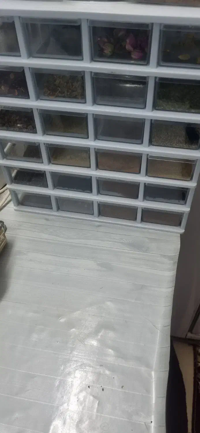 جا ادویه ۲۴ طبقه هر کشو ۵۰ گرم ادویه جا میگیره وسیله خوبیه برا کسانی ک میخان همه ی ادویه هاشون در دسترس باشه خیلی تمیز و کم استفاده شده