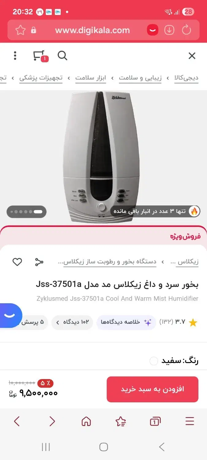 بخور گرم آن تا ۳۰ درجه هست تا مانع از رشد قارچ و باکتری در محیط شود