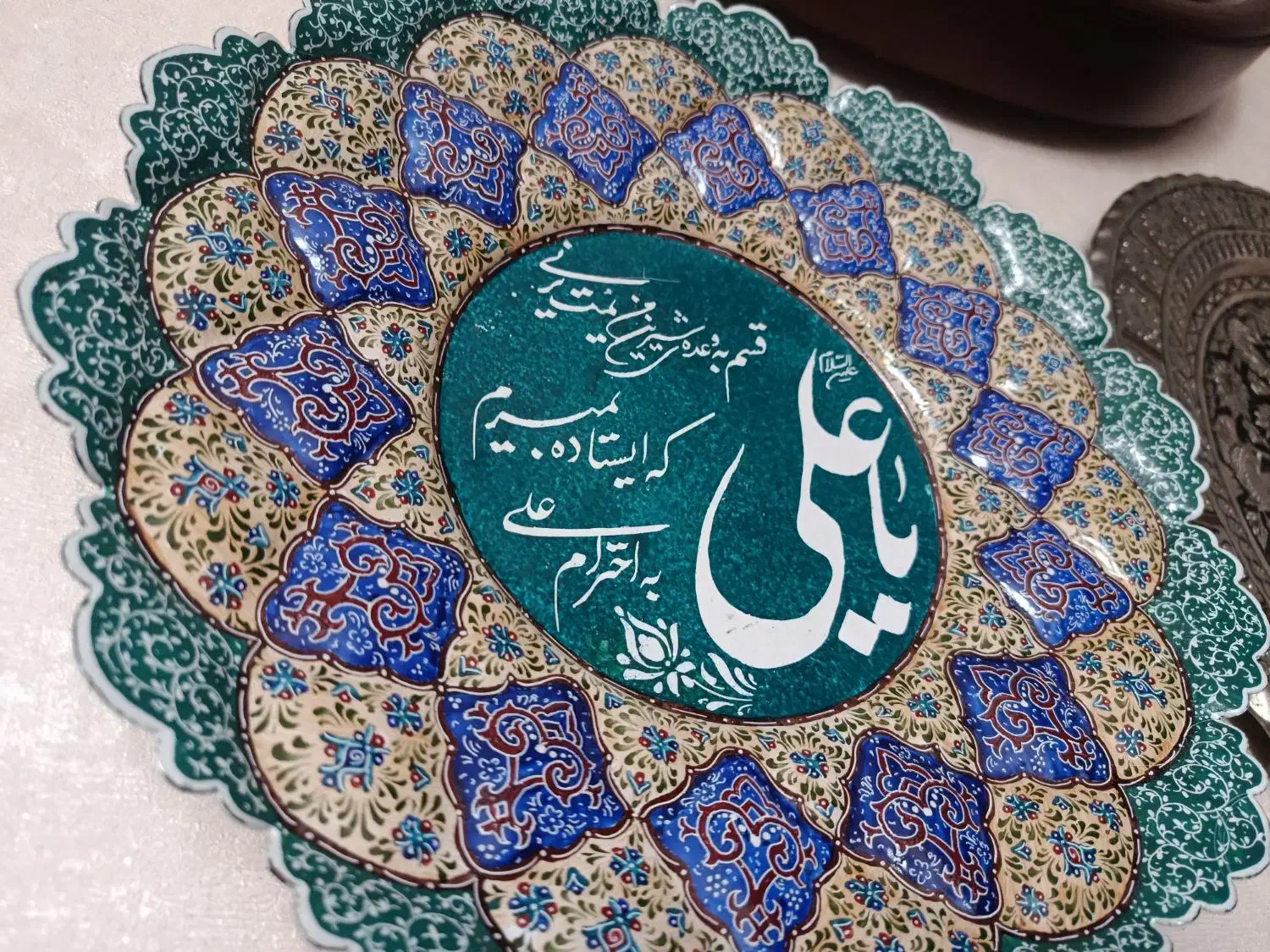 بشقاب قطر ۳۰سانت ،کعب دار جنس مس میناکاری با دست و قابل شستوشو برای دیوار و رومیزی نو هست ،سفارش شما پذیرفته میشود.