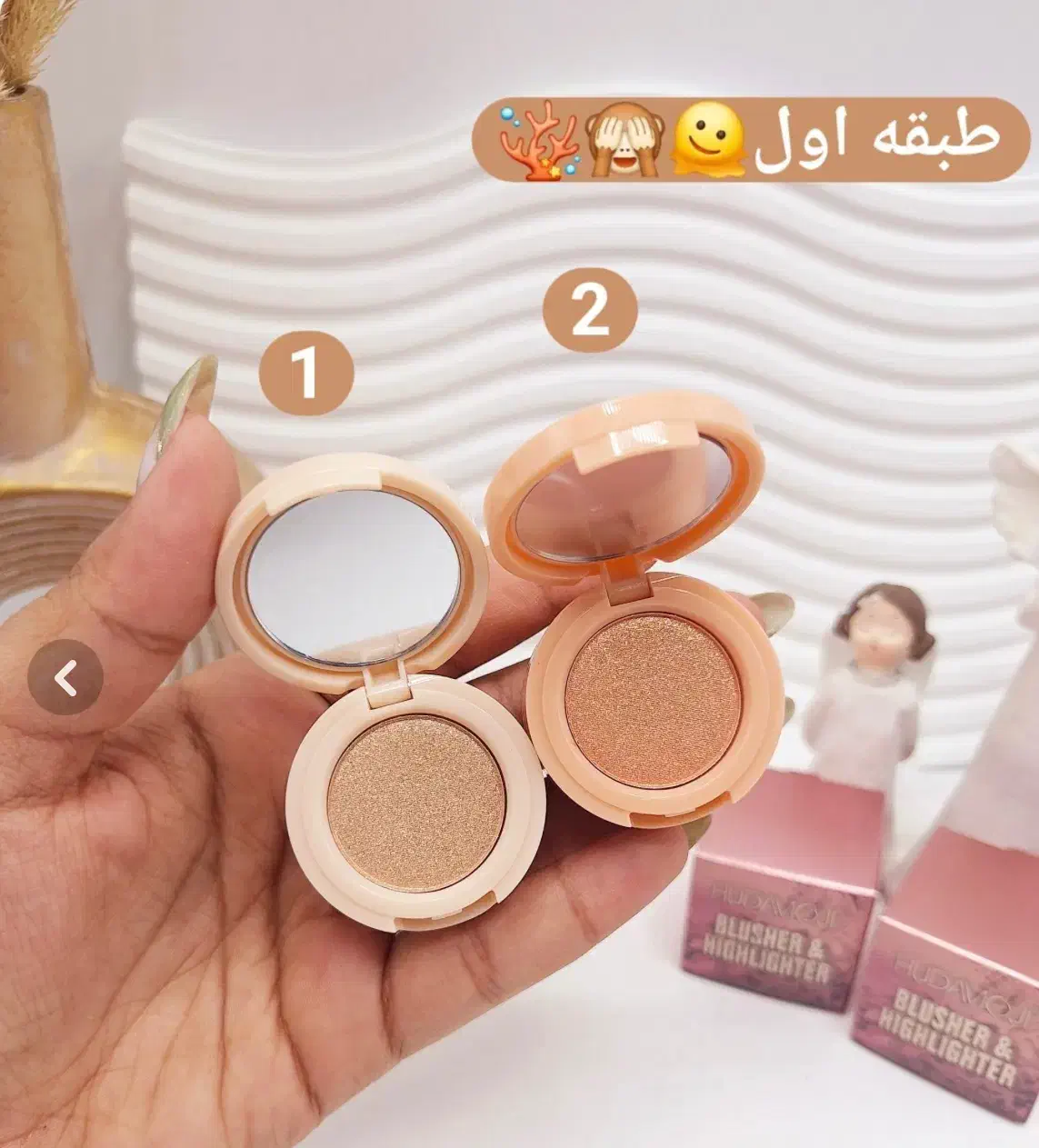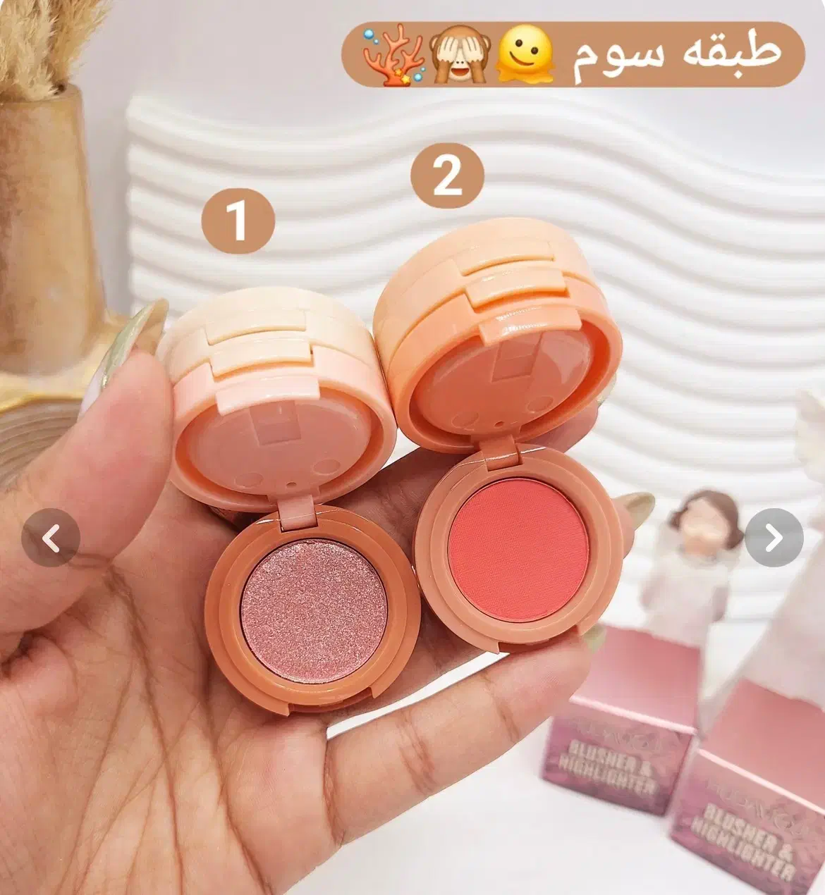 رژگونه و هایلایتر سه طبقه هدی موجی شامل سه طبقه رژگونه و هایلایتر و سایه دارای دوتا کد همراه اینه کیفیت و رنگ دهی عالی پیگمنت فوق العاده بدون ریزش ماندگاری بسیار بالا صدردصد اورجینال کاملن اصله (های کپی نیست) انقضا ۲۰۲۷ قیمت ۱۱۰تومان کانال ایتا دارم دوست داشتید پیام بگذارید لینک ارسال کنم