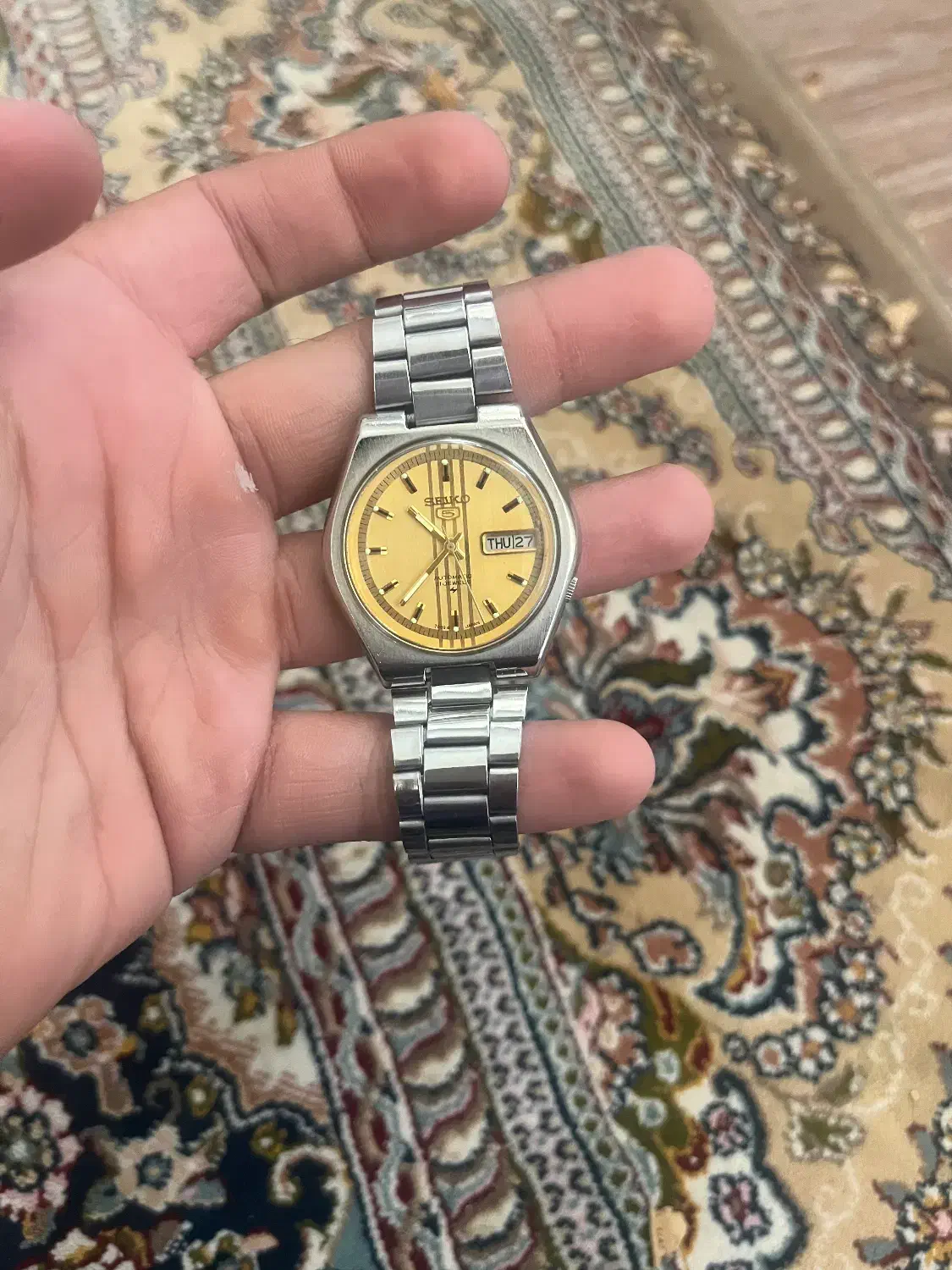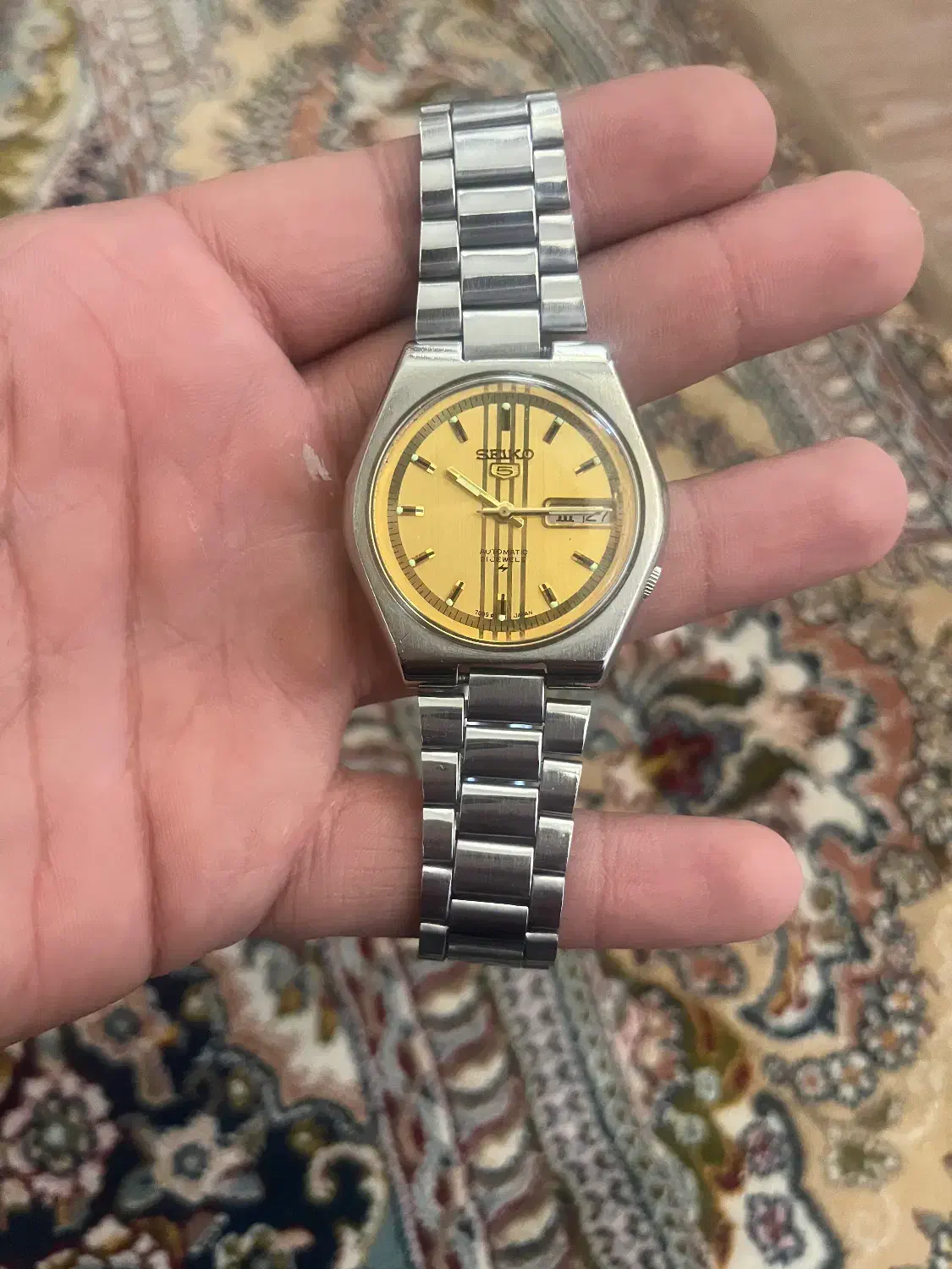 فروش یک عدد ساعت سیکو پنج قدیمی خیلی کم استفاده شده و در حد نو بدون تعمیر تیم دهی دقیق از کویت اورده شده ضد آب از همه لحاظ به شرط و سالم شب نماها کامل صفحه صد درصد و زیبا قاب اومگایی تقویم هم ژاپنی و هم انگلیسی پمپ تقویم سالم سالم ادرسم شهرکرد چهاراه بوعلی ارسالم دارم لطفا از خودتون قیمت ندید
