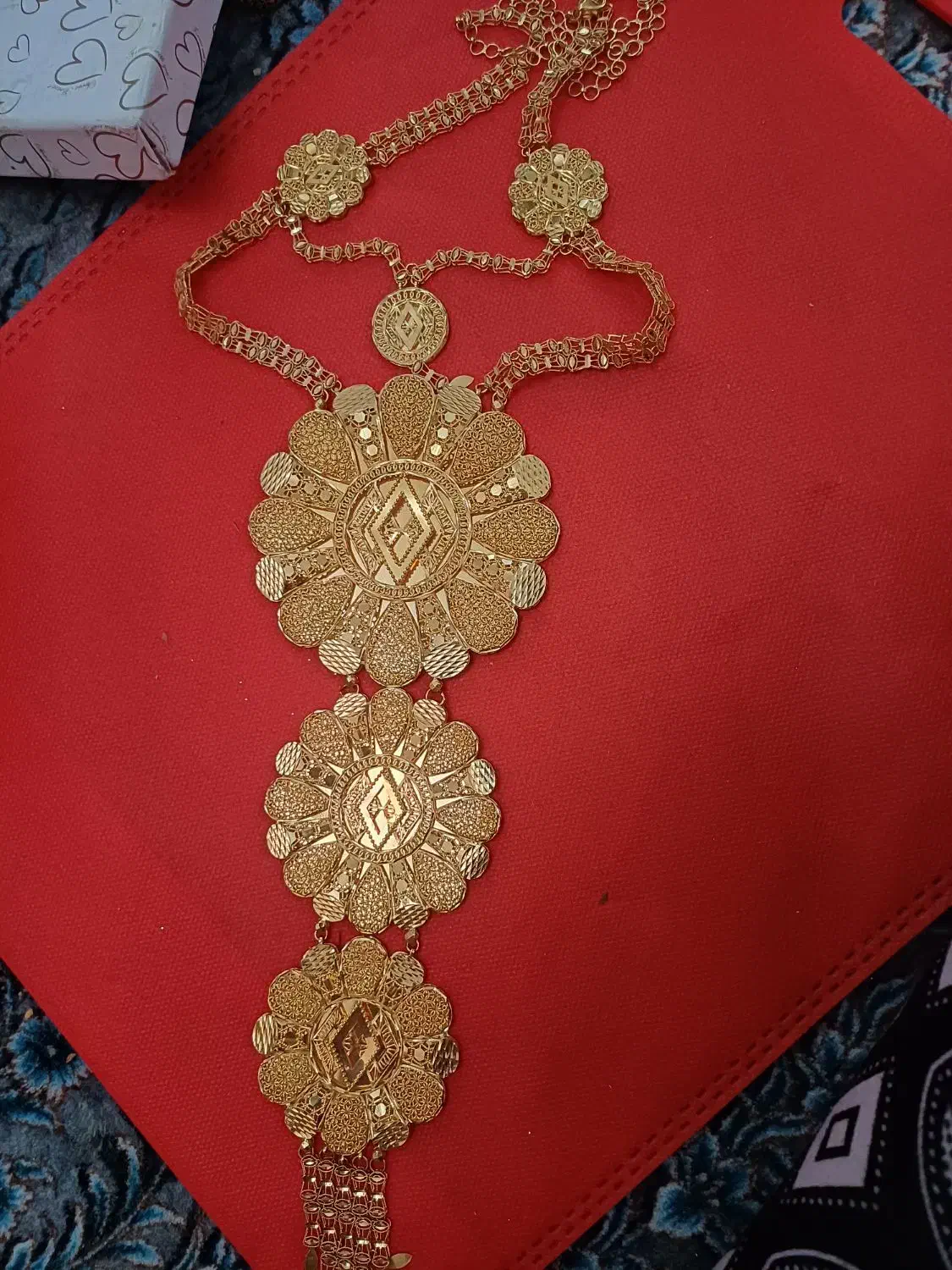 گردنبند شیک و بسیار نو، طلای ۲۱,استفاده نشده، ۱۳۲گرم درضمن طلاهای دیگه هم دارم . دستبند، انواع گردنبند، مدال، زنجیر متری، النگو،نیم ست، انگشتر های شیک چندین مدل گوشواره، همگی دارای فاکتور و خیلی تمیز، با وسواس بالا انتخاب و خریداری شده.