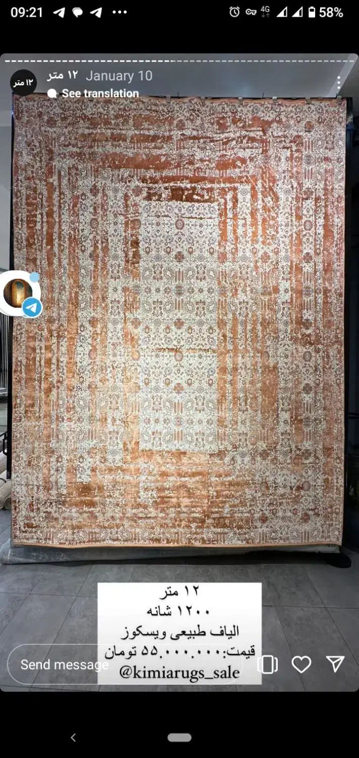یک تخته فرش ۴متری در حد الیاف طبیعی وارداتی برند کیمیا قیمت نمایندکی بالای۱۸