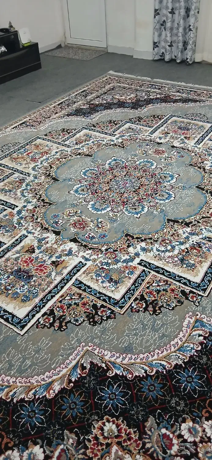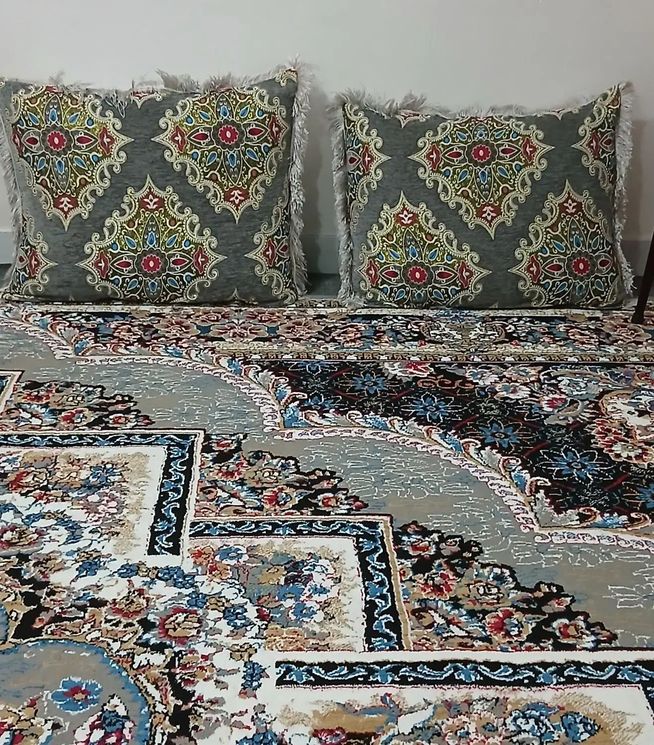 فروش یک تخته فرش ۱۲ متری به همراه ۲ عدد راهرویی ۲ متری و ۳عدد پادری و ۶ عدد پشتی با روکش یکجا باهم.