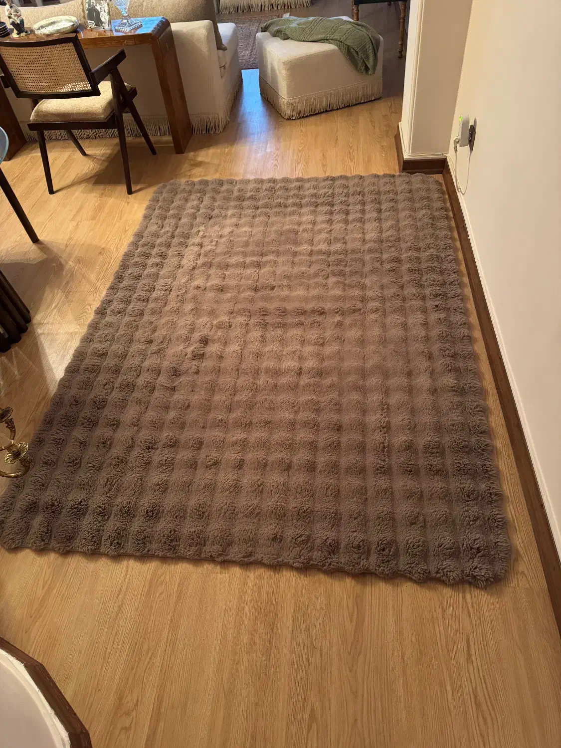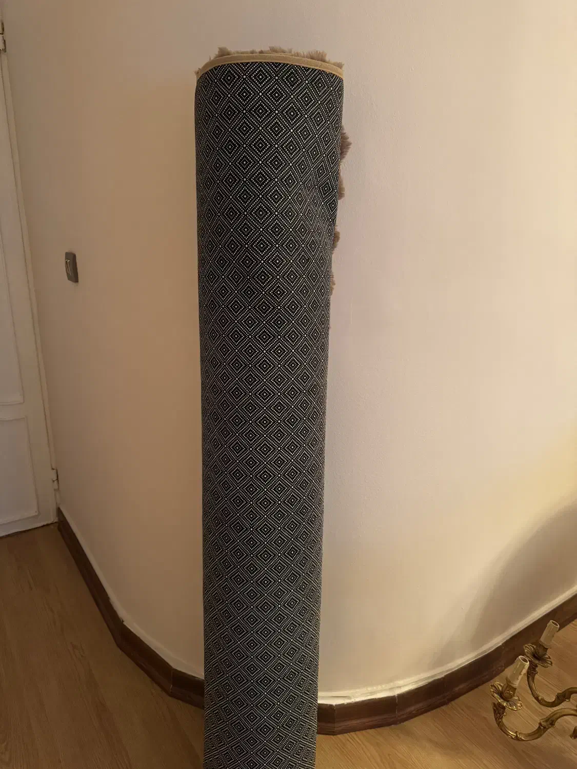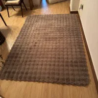 فرش ۳ متری قهوه ای طرح جعبه تخم مرغی هست روش و کاملا نرم و ضخامت داره پشت فرش حالت چسبندگی داره به زمین نیاز به چسب فرش نداره کاملا تمیز و نو هست برای تازه عروس بوده استفاده کمی شده