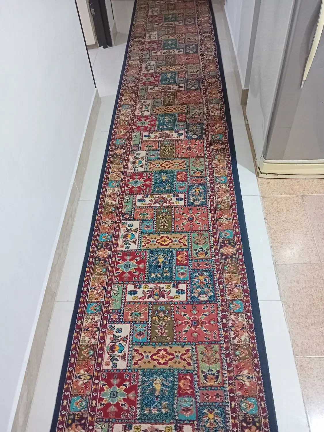 سلام فرش کناره پرز دار در حد نو تمام نخ طول ۴ونیم عرض 80 بدون سرسوزن پارگی و سوختگی تحویل دولت آباد