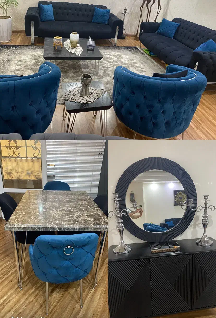 فروش مبل هشت نفره میزناهارخوری چهارنفره آینه وکنسول فرش دوستان عزیزبه خریدار واقعی تخفیف هم داده میشود