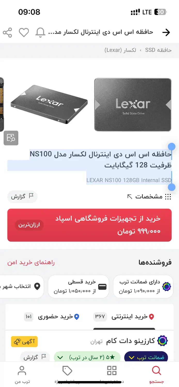 فروش هارد اس اس دی ۱۲۸ این محصول تک و استفاده اصلا اصلا نشده فقط کارتون یکمی پاره شده محصول نو نو مشخصات حافظه اس اس دی اینترنال لکسار مدل NS100 ظرفیت 128 گیگابایت LEXAR NS100 128GB Internal SSD