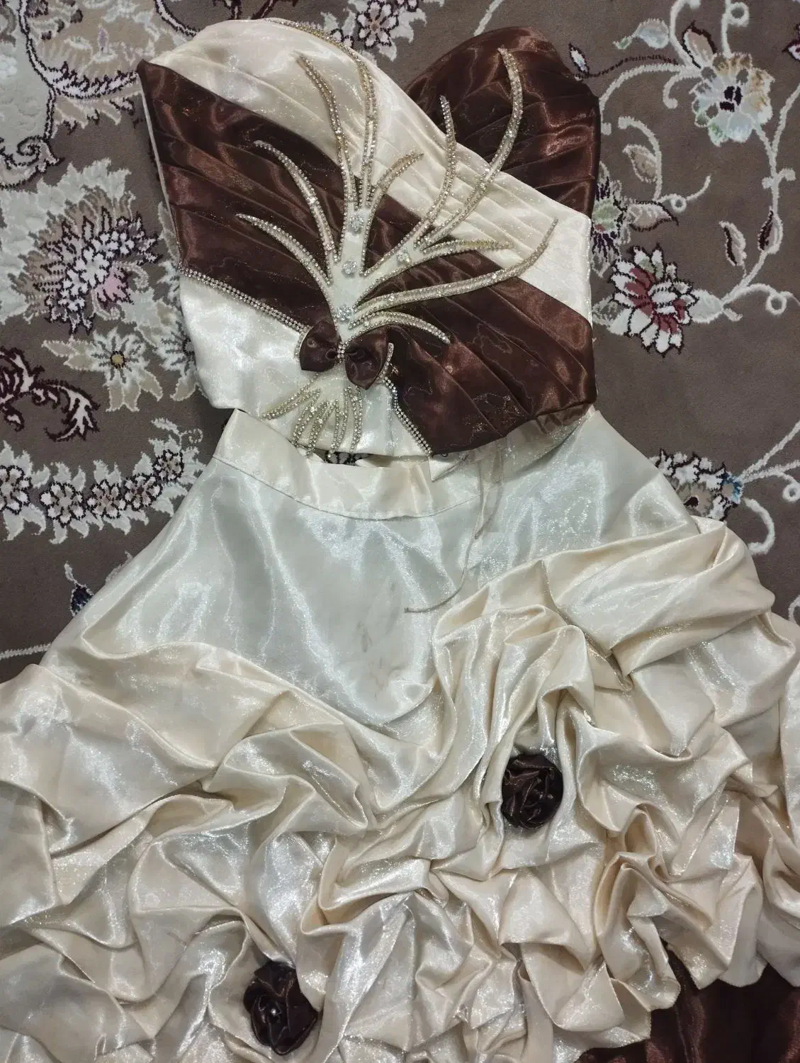 لباس عروس کرم قهوهای یکبار پوشیده شده