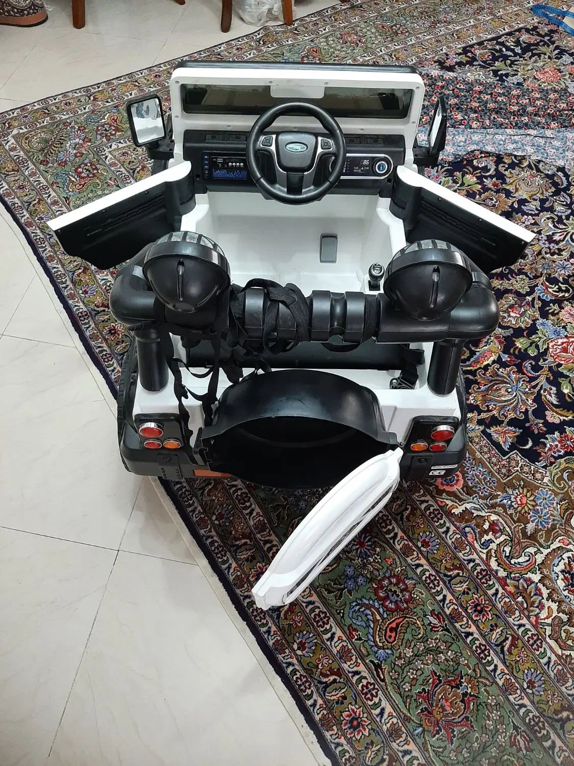 ماشین شارژی آفرودی جیپ – نو ✔ کاملاً نو و یکبار هم استفاده نشده چهار موتوره ✔ صندلی چرم دو رنگ ✔ کمکفنر واقعی (مناسب مسیرهای ناهموار) ✔ درب بازشو + صندوق عقب ✔ چراغدار (جلو + سقف) ✔ پنل موزیک، ورودی USB و کلید استارت ✔ سایز بزرگ – مناسب بچهها تا ۱۲ سال ❌ بدون ریموت (کنترل مستقل کودک) ⚠️ شارژر همراه ماشین نیست – باتری زیر صندلی قرار دارد
