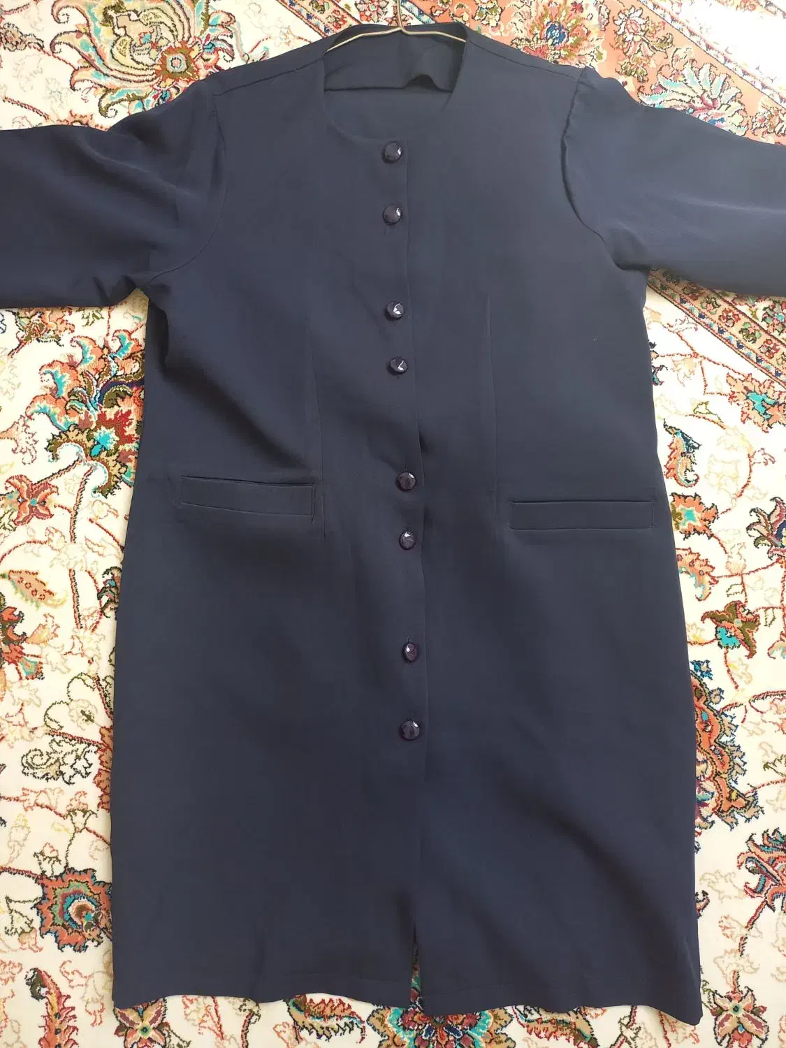 مانتو شلوار اداری رنگ سرمه ای جنس پارچه کرپ مازاراتی . خودم یک میلیون دویست پول دوخت دادم پارچه ام جدا خریدم. اصلا نیازی به اتو نداره چون پارچه اش جنسش مازراتی