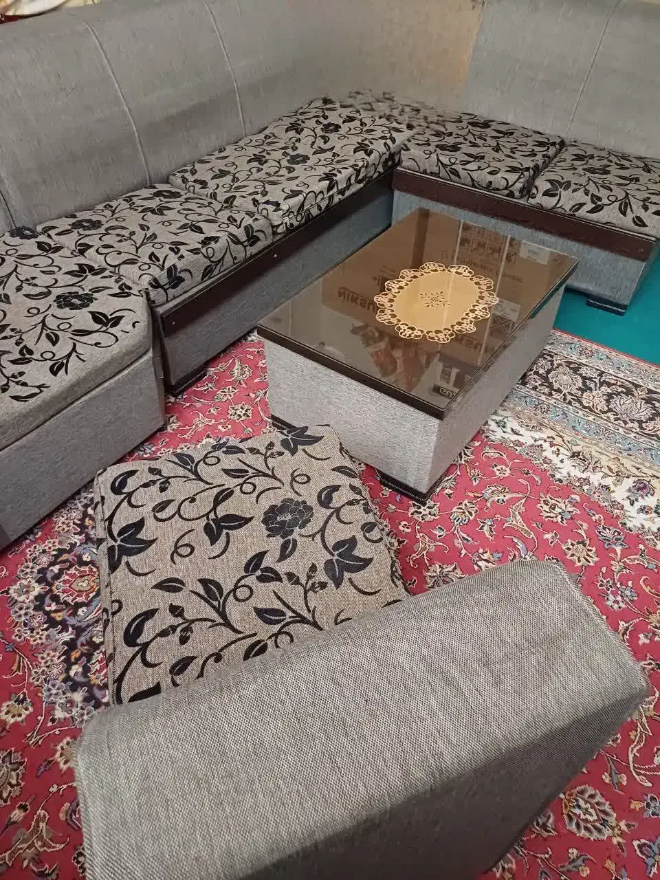مبل ال سالم بدون پارگی وشکستگی با میز بزرگ جلو با پرینتر hp سالم معاوضه دارم
