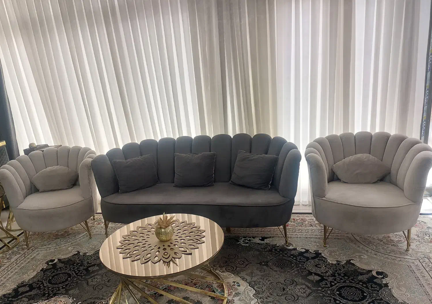 مبل ۸نفره مدل صدفی ۲ سال کار کرده درحد نو همش سالم فقط یکی از مبلای سه نفرش یکم صدا میده چوبش که واسه تعمیرش ۲تومن کم کردم از قیمتش