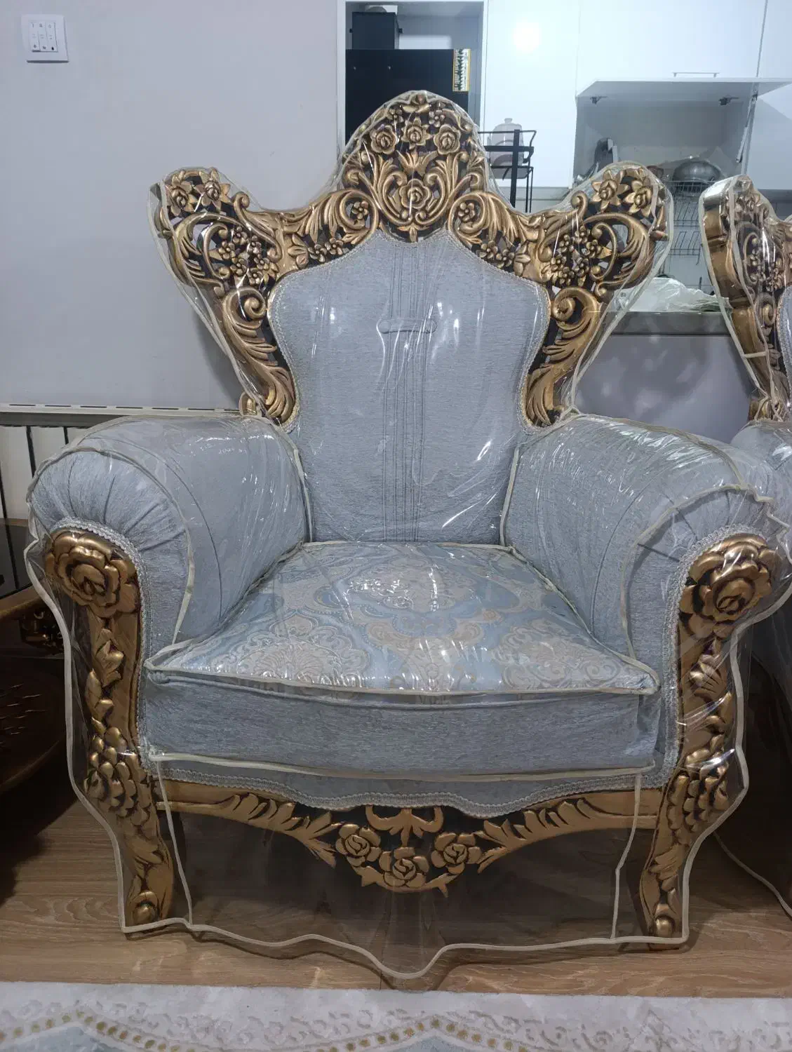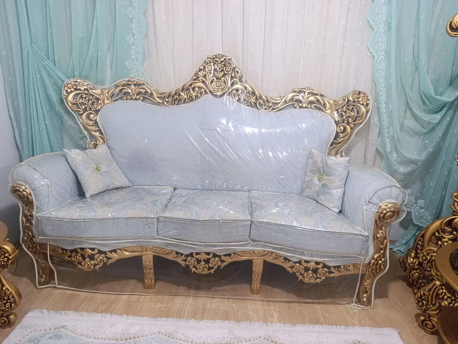 یک دست مبل سلطنتی 7 نفره 2 تا میز عسلی 1 جلو مبلی بزرگ 1 ساعت ایستاده 1 میز تلویزیون یک جا توافقی به فروش میرسد