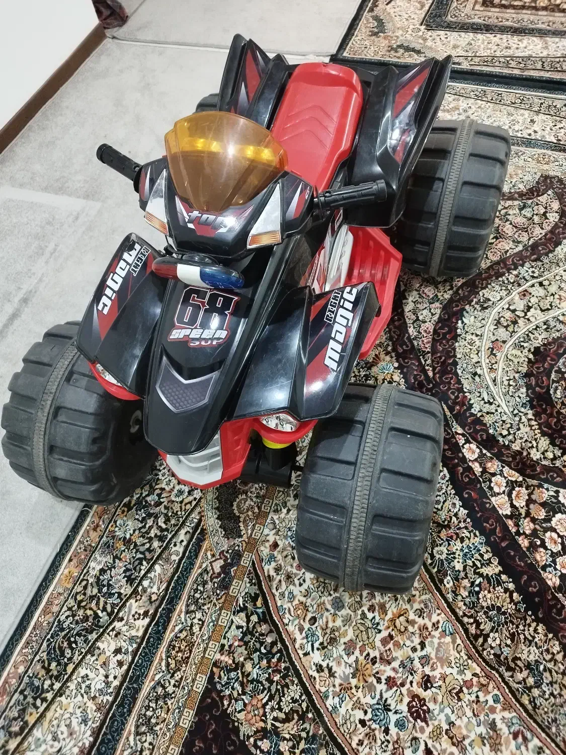 سلام . موتور چهار چرخ شارژی بسیار با کیفیت گیربکسی سه حالته و کاملا سالمه خیلی موتور در حد نو میباشد براش چراغ جلو سویچ و اژیر خطر نصب شده .
