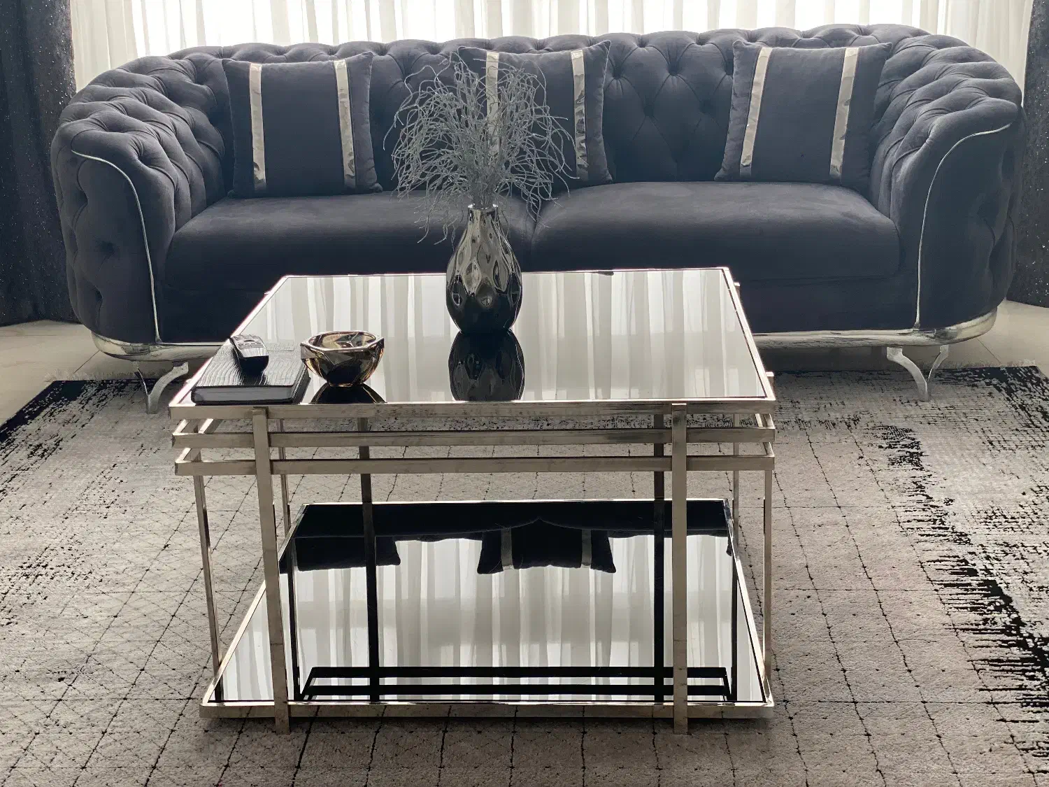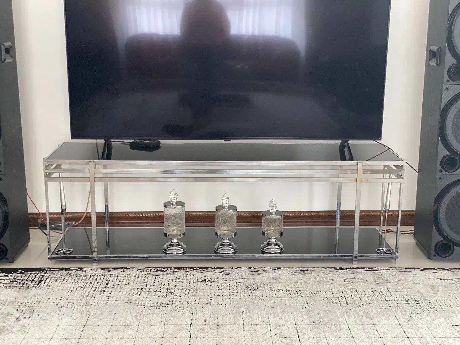میز عسلی و دو کناره و میز تلوزیون استیل شیشه مشکی