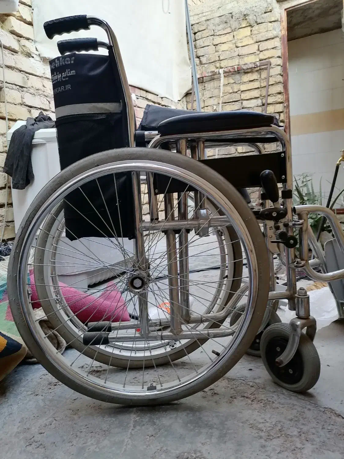 ویلچر سایر متوسط تاشو خیلی کم استفاده شده ممکنه چرخ نیاز به تعمیر داشته باشد