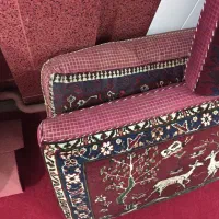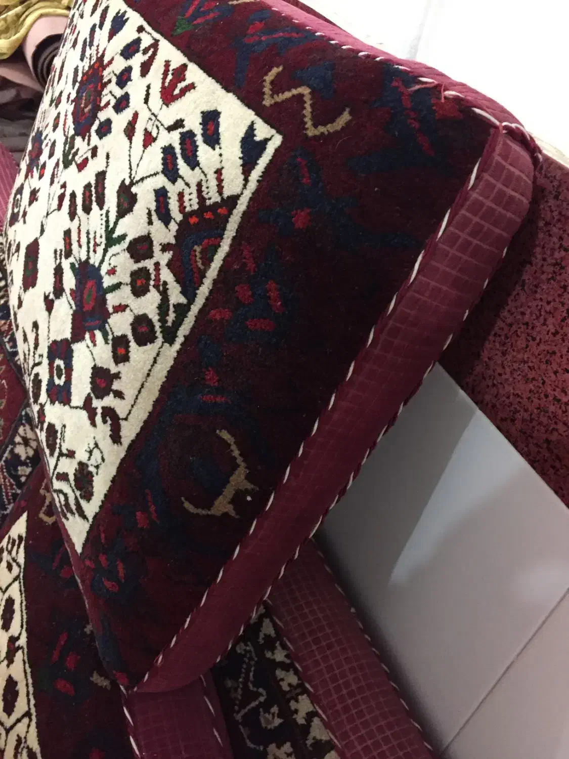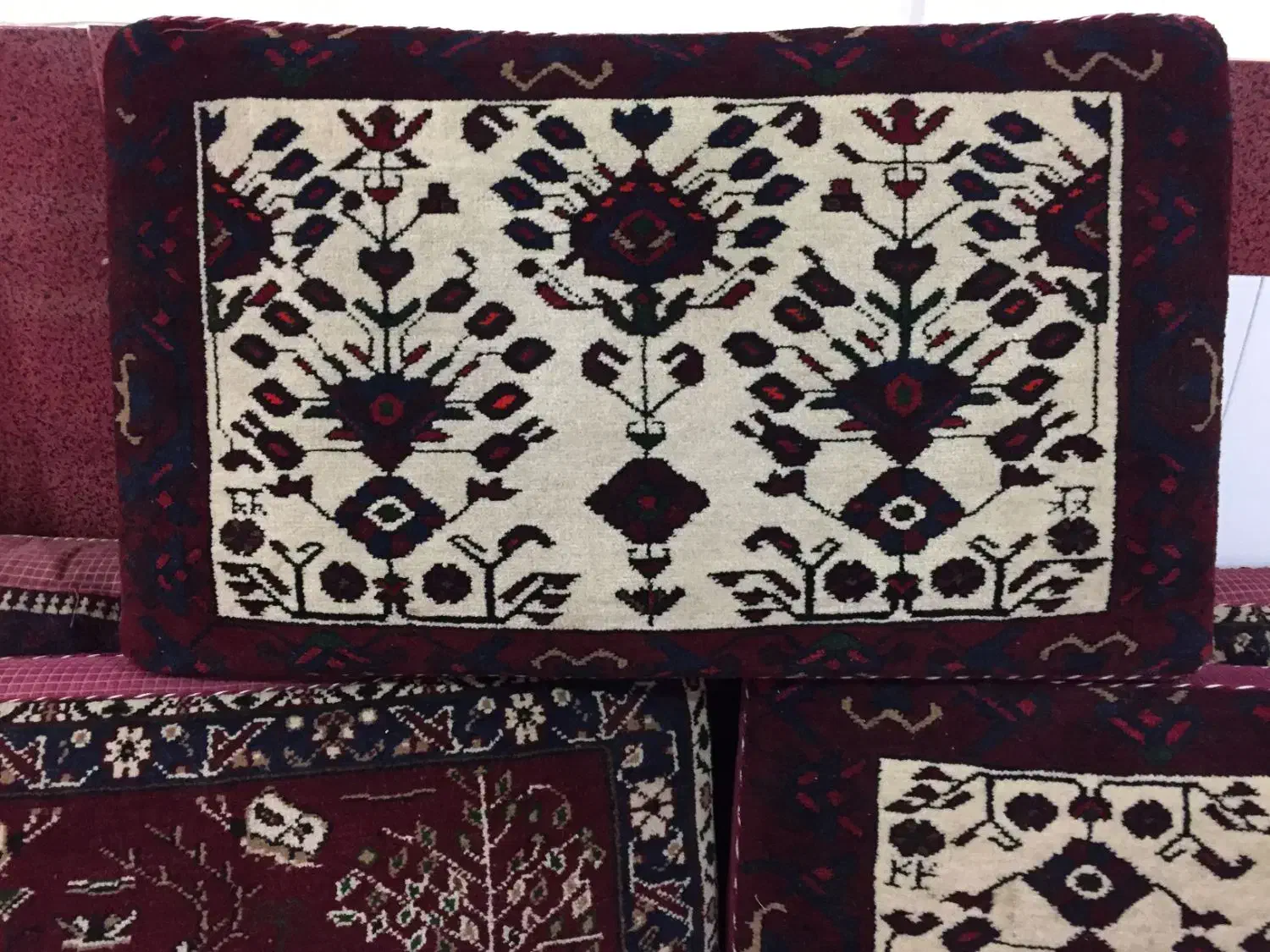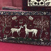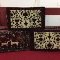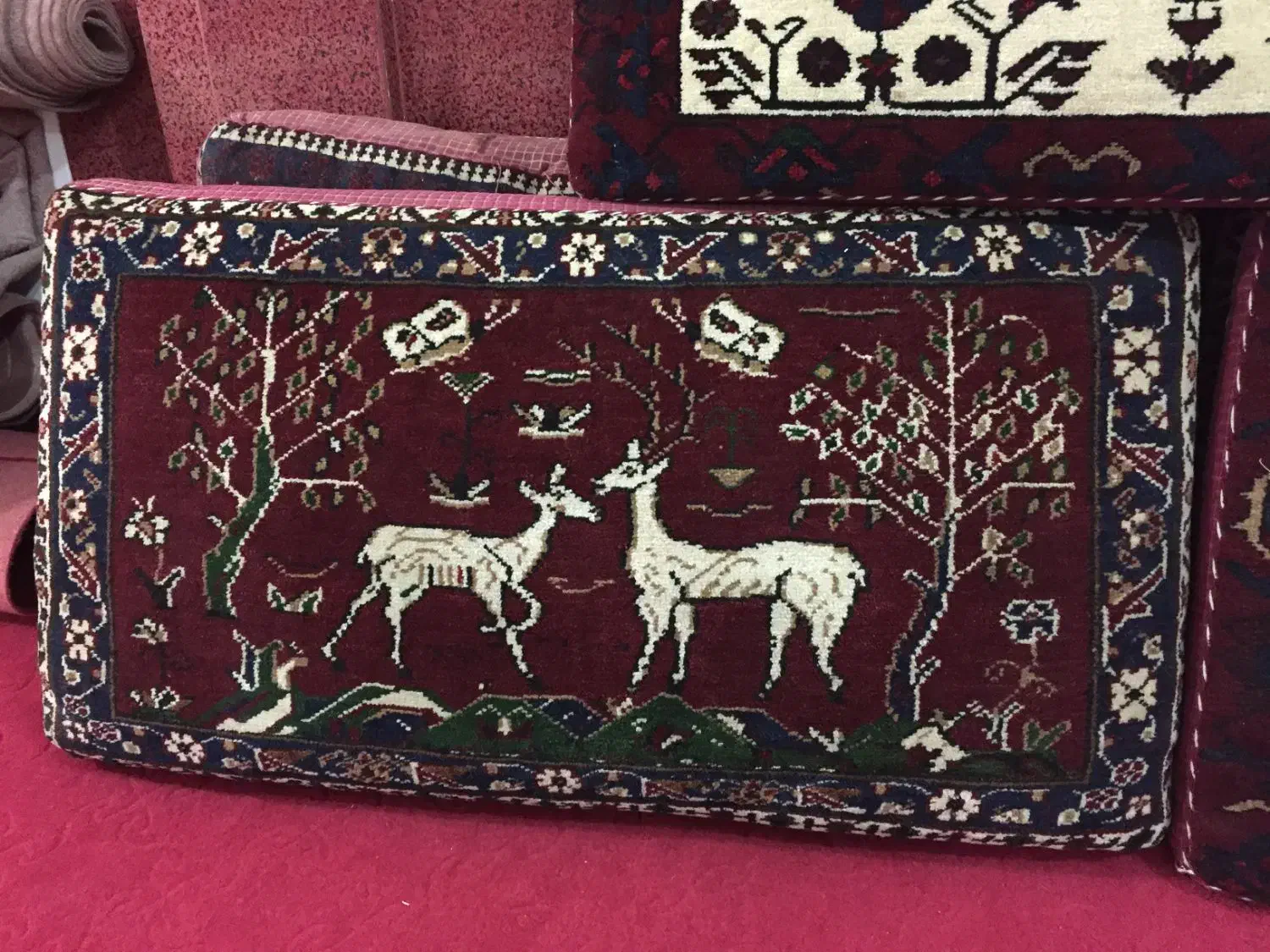 با سلام دوستان ۵ عدد پشتی دست بافت قشقایی شاهسونی در حد نونو ، طرح گل و آهو می باشد و بدون کوچکترین پارگی وسوختگی و زیادم استفاده نشده ** دوجفت ویکیش تکی میباشد بافته شده از پشم گوسفندی طبیعی با رنگرزی شده با رنگ اصلی آلمانی ...* و پشت پشتی ها پرشده از پشم گوسفندی و بسیار نرم و سبک ودور دوخت بصورت نوار دوخته شده هر آنچه که تو عکس مشاهده میکنید *... و به صورت تکی و جفت فروخته میشود . دونه ای ۲۵۰۰ ت لطفا خریدار واقعی تماس بگیره ، ممنون ار عوامل برنامه دیوار !!!!
