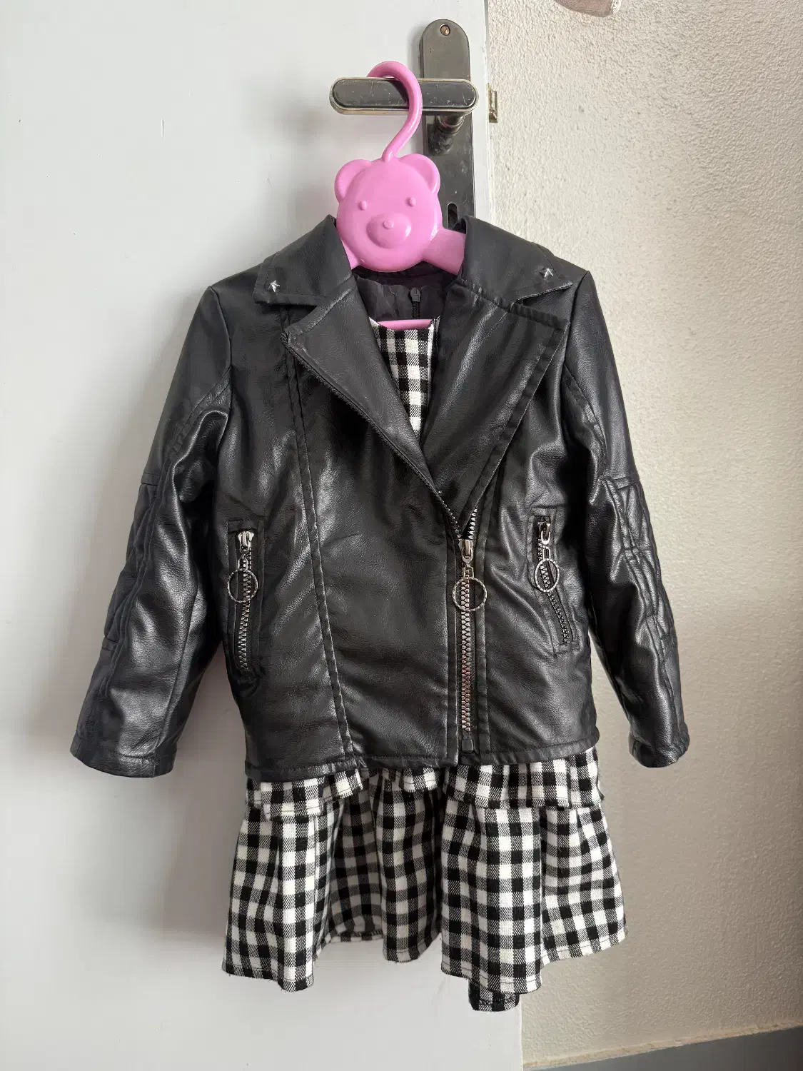 ست دو تکه سارافن چین دو طبقه به همراه کت چرم مناسب سن۴/۵-۶سال در حد نو شاید کلا۳بار پوشیده داخل کار چند لکه ی لاک داره که فقط از داخل هست و بیرون مشخص نیست قیمت را با تمام مدل ها مقایسه کنید