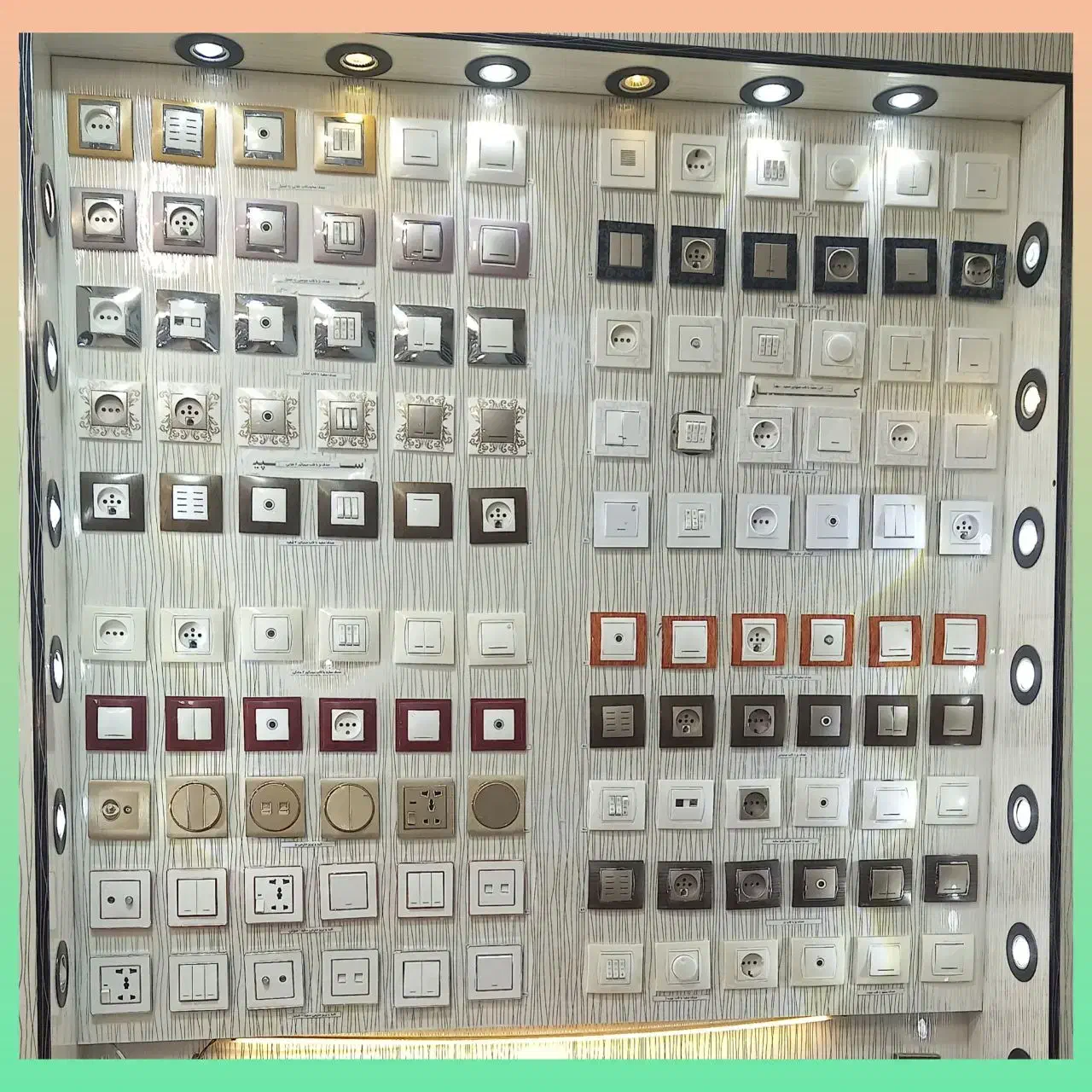 ۱_ تسویه حتی با چکهای بلند مدت ۲_ تسویه حتی با چکهای بلند مدت ۳_ زیباترین مدلهای موجود کشور ۴_کیفیت عالی ۵_ معرفی نصب کننده با انصاف و منظم ۶_ قیمتهای عالی (پایین ترین قیمت، عمده فروشی) ۷_ بالاترین تنوع در رنگ و مدل ۸_ در صورت تمایل شما، ارائه تمامی لوازم برقی ساختمان از صفر تا صد با چکهای بلند مدت، حتی سیم وکابل و در بازکن ۹_کاربران فروش حرفه ای، متین و خوش برخورد ۱۰_ دادن مشاوره مورد نیاز به شما، حتی در صورت خرید نکردن شما لطفاً تصاویر رو ورق بزنید