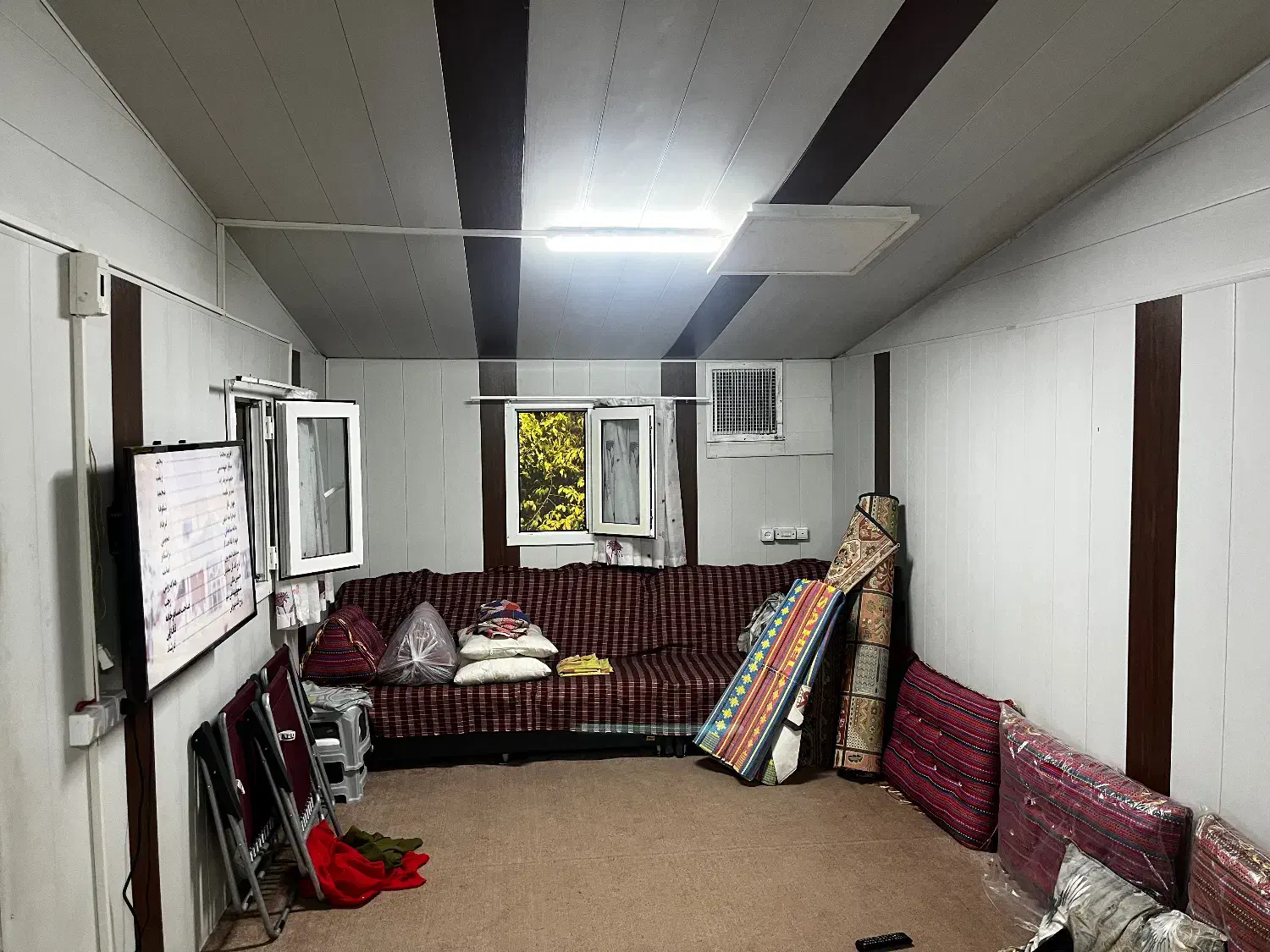 ۲۴ متر (۳*۸) در حد نو سالن یک تیکه نما سفید رنگ کوره ای و سقف گالوانیزه( بدون جذب گرما) دیواره ها عایق صدا و حرارت ، دولایه با یونولیت اسکلت قوطی محکم ۴۰*۴۰ زیر کار دوتا تیراهن ۱۶ دیواره داخلی پی وی سی قابل شستشو ارتفاع وسط ۲۸۰ سانت ارتفاع کناره ها ۲ متر دو طرف جمعا سه تا پنجره ۱*۱ درب ورودی ۷۰*۲۰۰ درب و پنجره یو پی وی سی درجه یک ضد صدا و عایق کابینت و سینک و هود و اجاق گاز کاشی کاری پشت کابینت و اجاق گاز سیم کشی درست و کلید و پریز به تعداد زیاد بسیار تمیز و آماده برای استفاده پایه نصب تلویزیون روشنایی بیرون کانکس 148 بدون کابینت و آشپزخانه و کولر 168 با آشپزخانه کامل و کولر تخفیف پای معامله