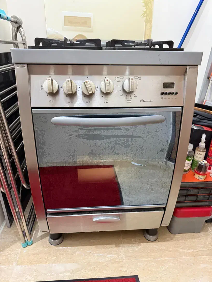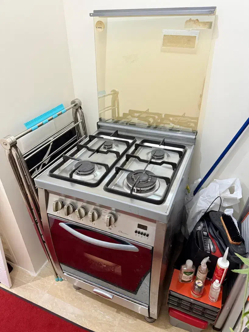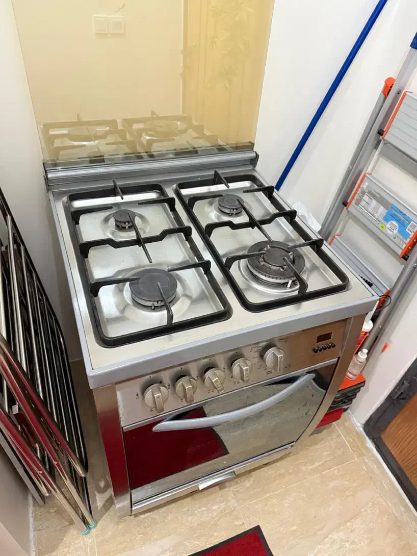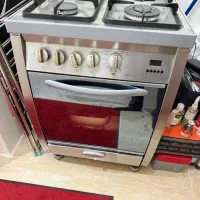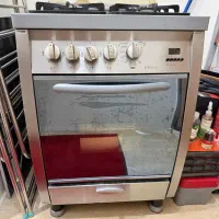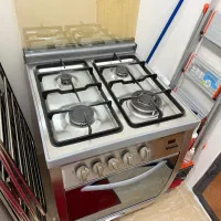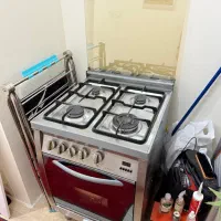 گاز ۴ شعله استیل بدون خط و خش و فرورفتگی تایمر، گردان مرغ و چراغ داخل فر دارای ترموکوپل کاملا سالم و تعمیر نشده قیمت ۱۴ م تومان