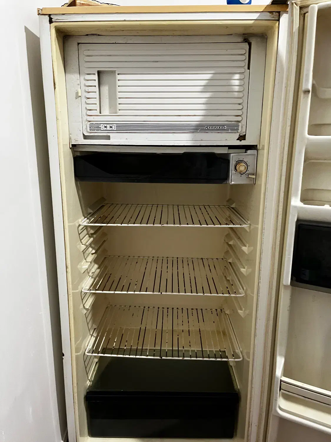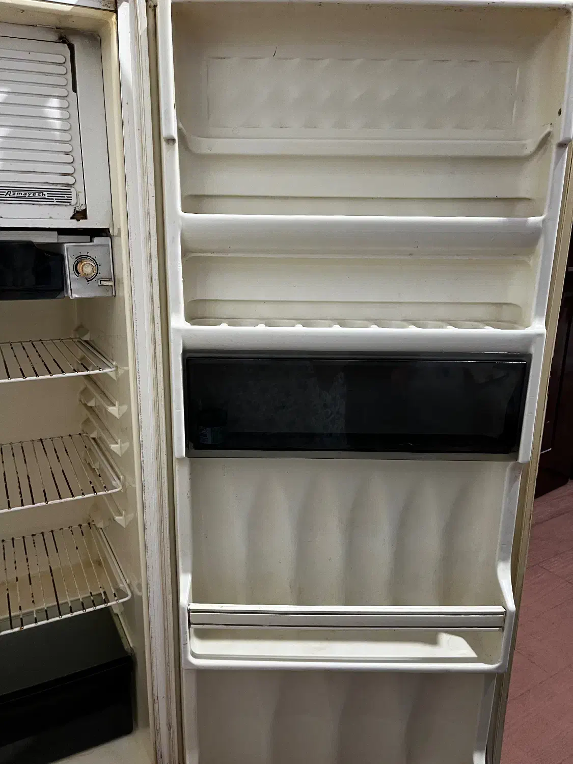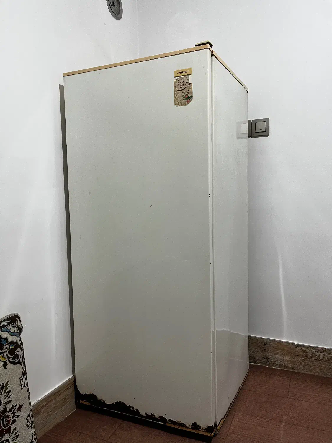 کمی پایین یخچال زنگ زدگی داره و درب جای یخی شکسته ولی موتورش سالمه و خوب کار میکنه